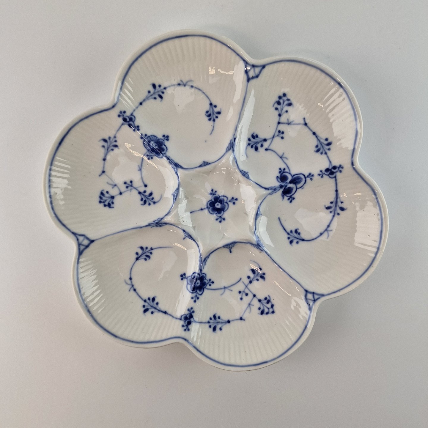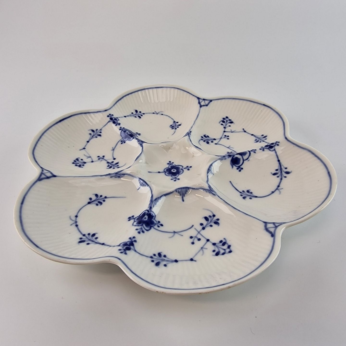 Beskrivelse: Fad inddelt i små rum fra stellet Musselmalet Riflet. No 1/483