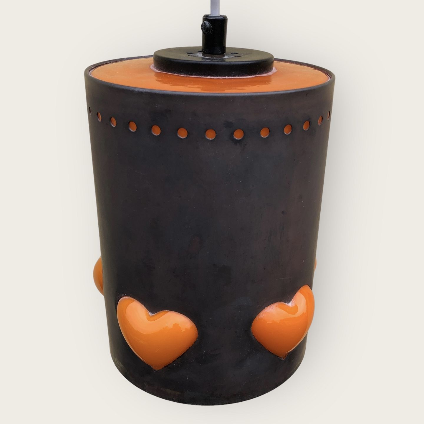 Description: Retro lamp with hearts. Orange glass and metal. Nice used condition. Height 20 cm.