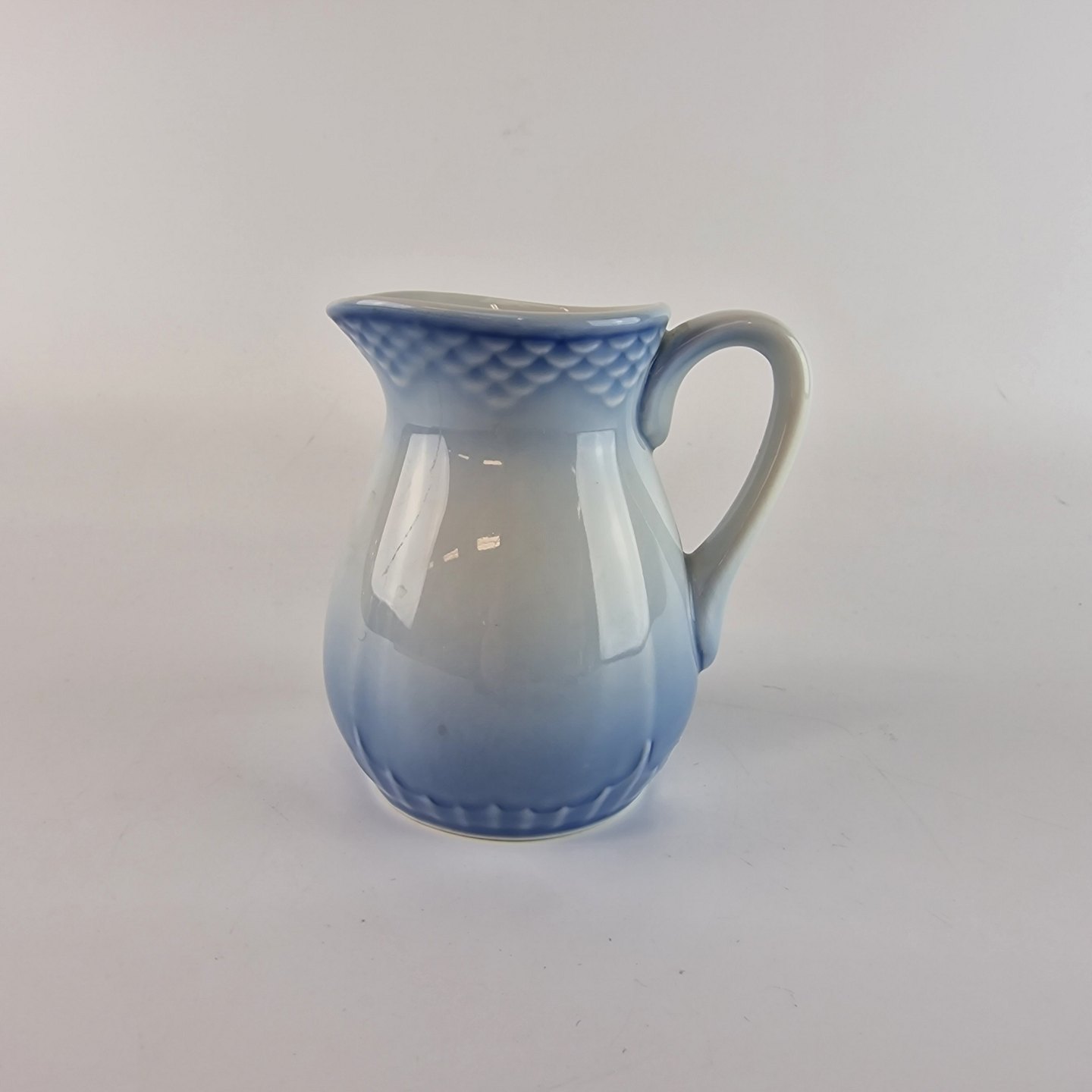 Beskrivelse: Flødekande af hotelporcelæn fra stellet Blå tone. No 802