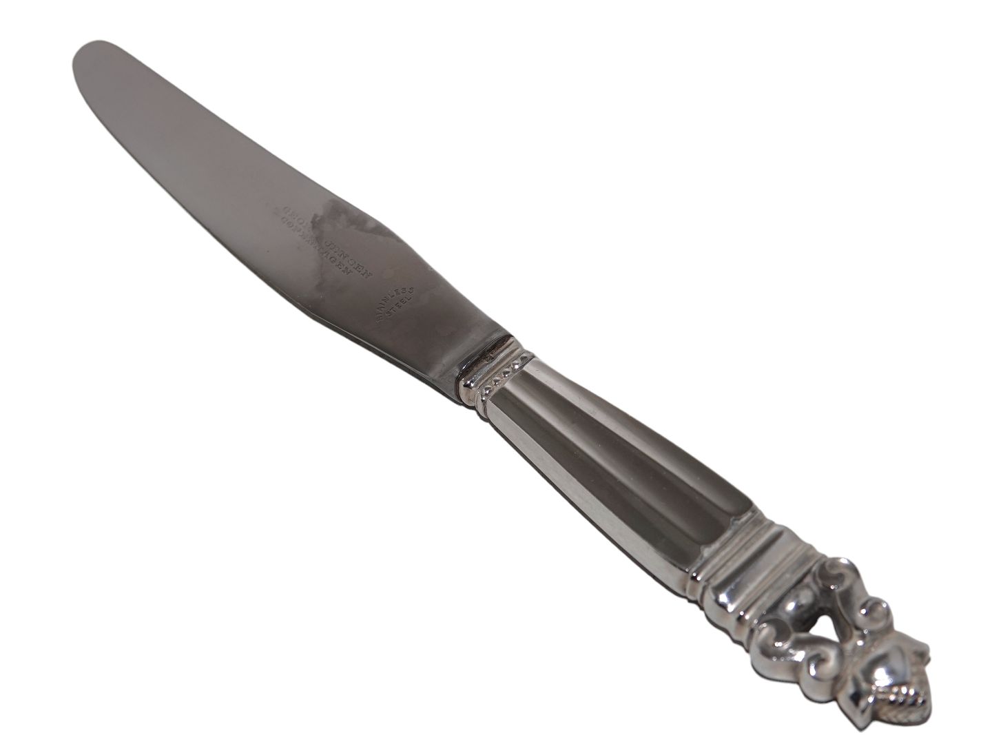 Beskrivelse: Georg Jensen Konge Sterlingsølv, lang middagskniv.