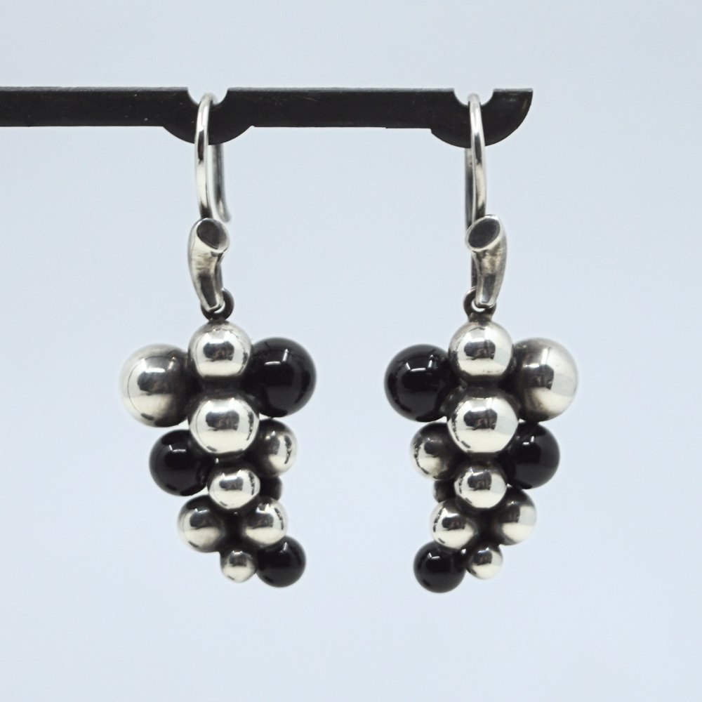 Description: Georg Jensen; Pair of Moonlight Grapes earrings in sterling silver with black onyx.