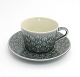 Tekop med underkop. Højde 6 cm. Diameter 8,5 cm. Underkop 15 cm. Flot stand, mint condition. Ingen krakeleringer. Pris: 475 kr. stk. Lager: 6