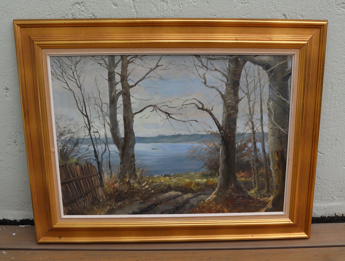 Painting: Oil on Canvas Mariager Fjord Signed e. Thorbjoern
