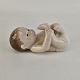 Beskrivelse: Figur i porcelæn med motiv af liggende baby med hvid ble. Nr. 027