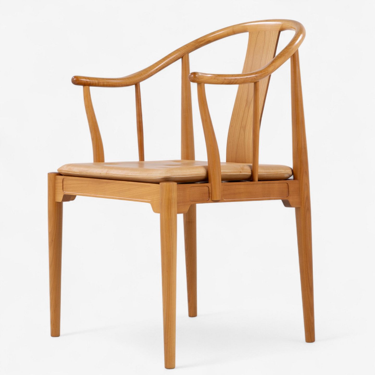 FH 4283 - Chinese chair in cherry with cushion in patinated natural leather. Manufacturer's mark.