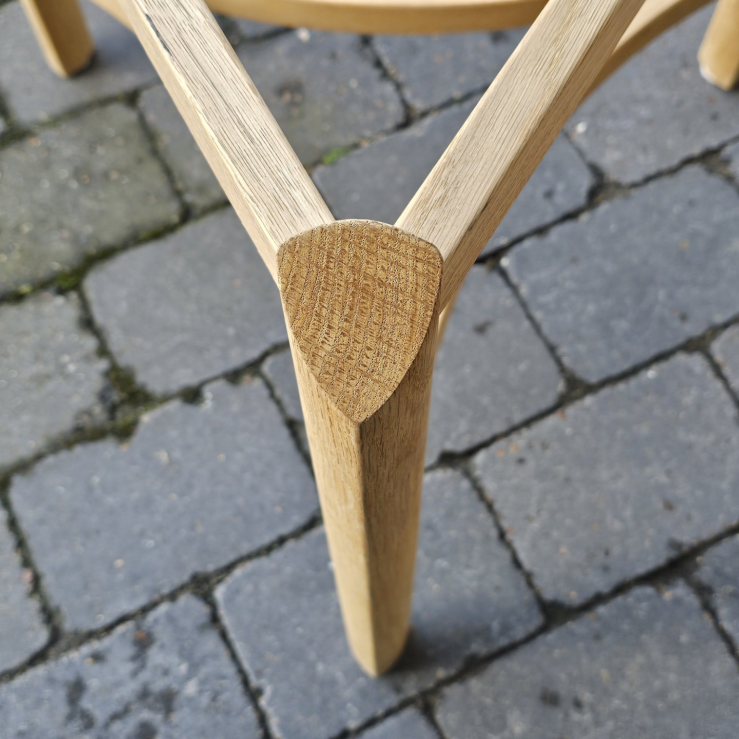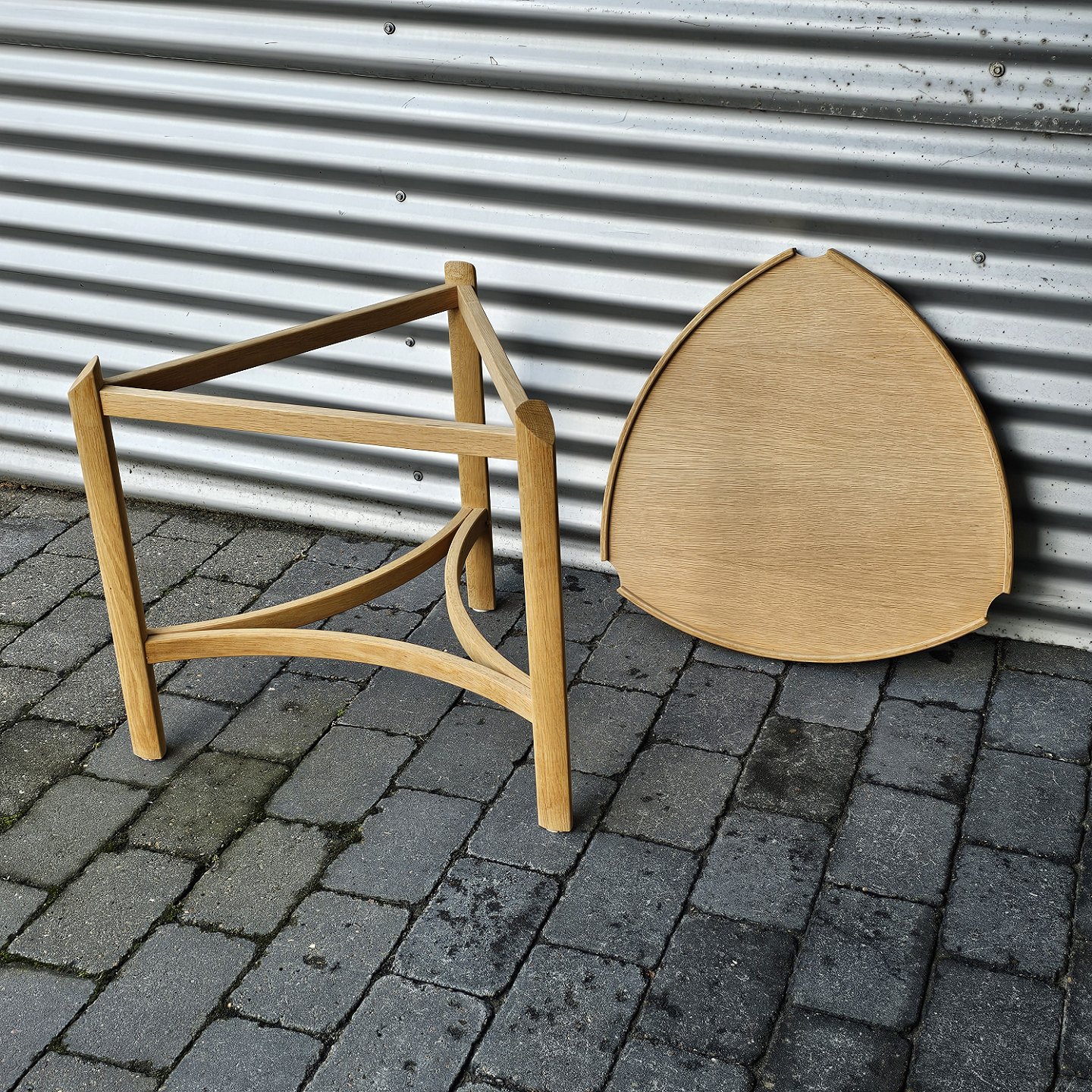 Beskrivelse: Trebenet bord i eg med aftagelig bakke