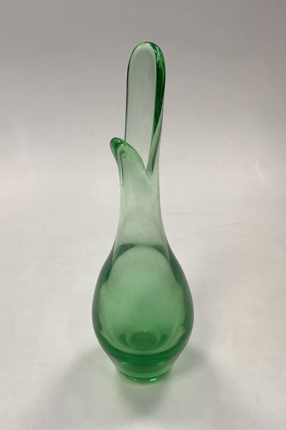 Beskrivelse: Holmegaard Duckling / Næb-Vase af græsgrønt glas. Designet af Per Lütken fra 1952-1974.