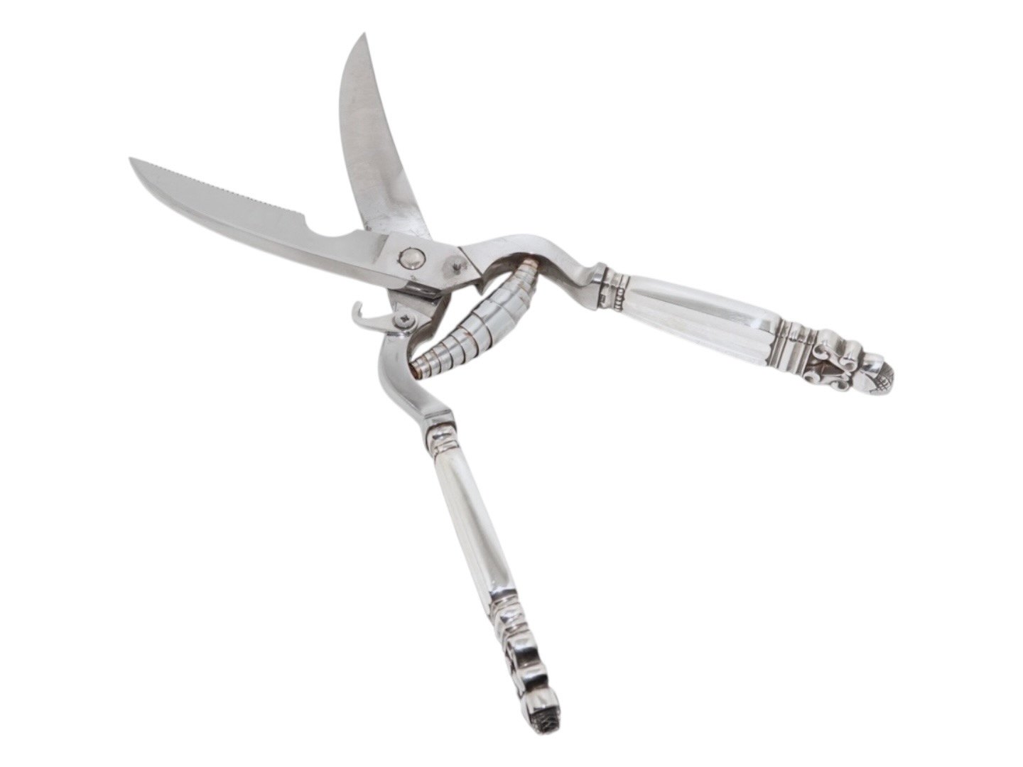 Description: Georg Jensen Acorn sterling silver and stainless steel, poultry scissors.
