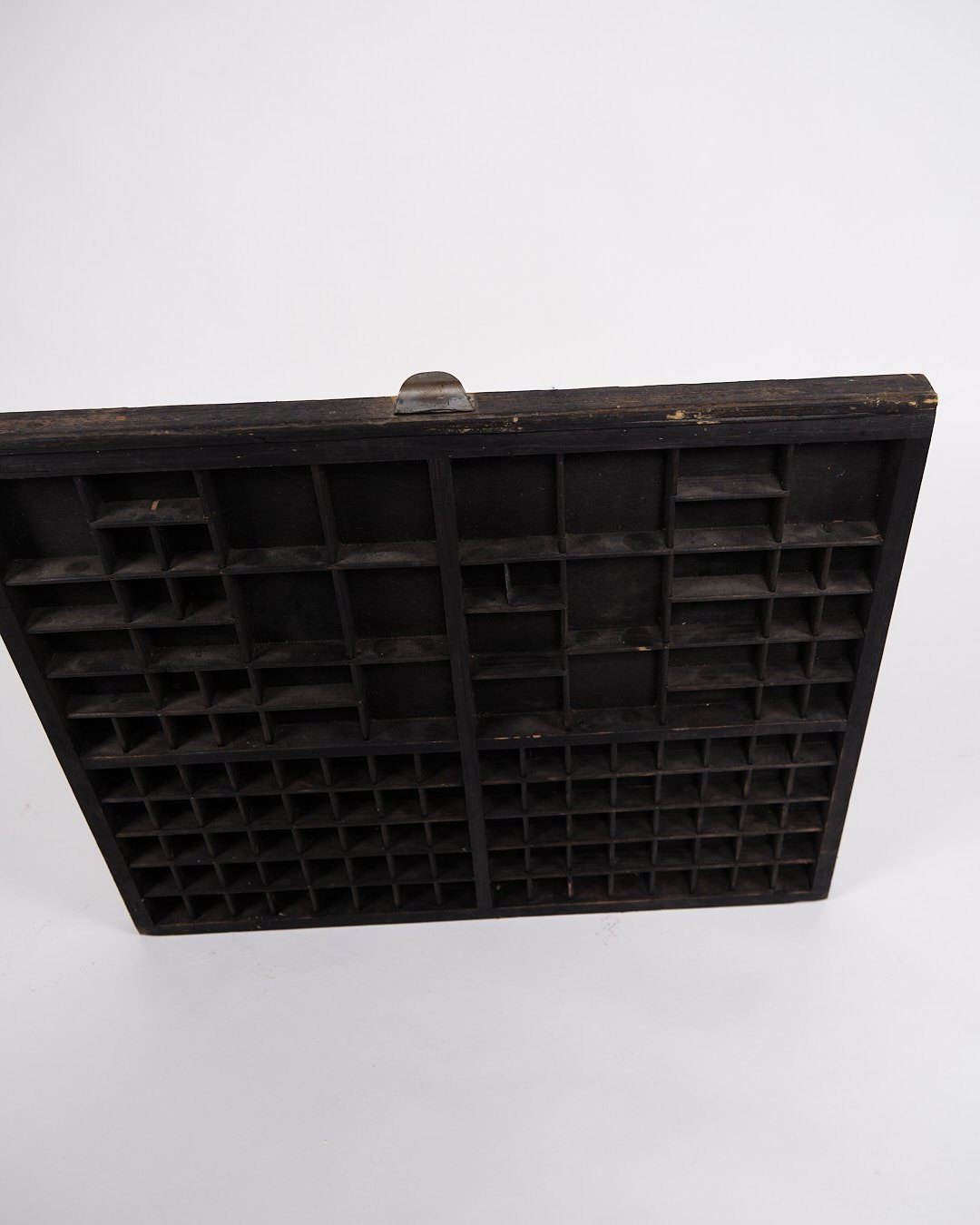 Beskrivelse: Gammel væghængt sættekasse fra 1930’erne. Sort bemalet træ med små rum.