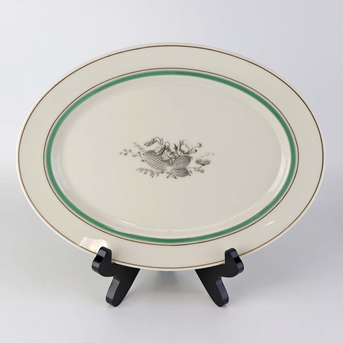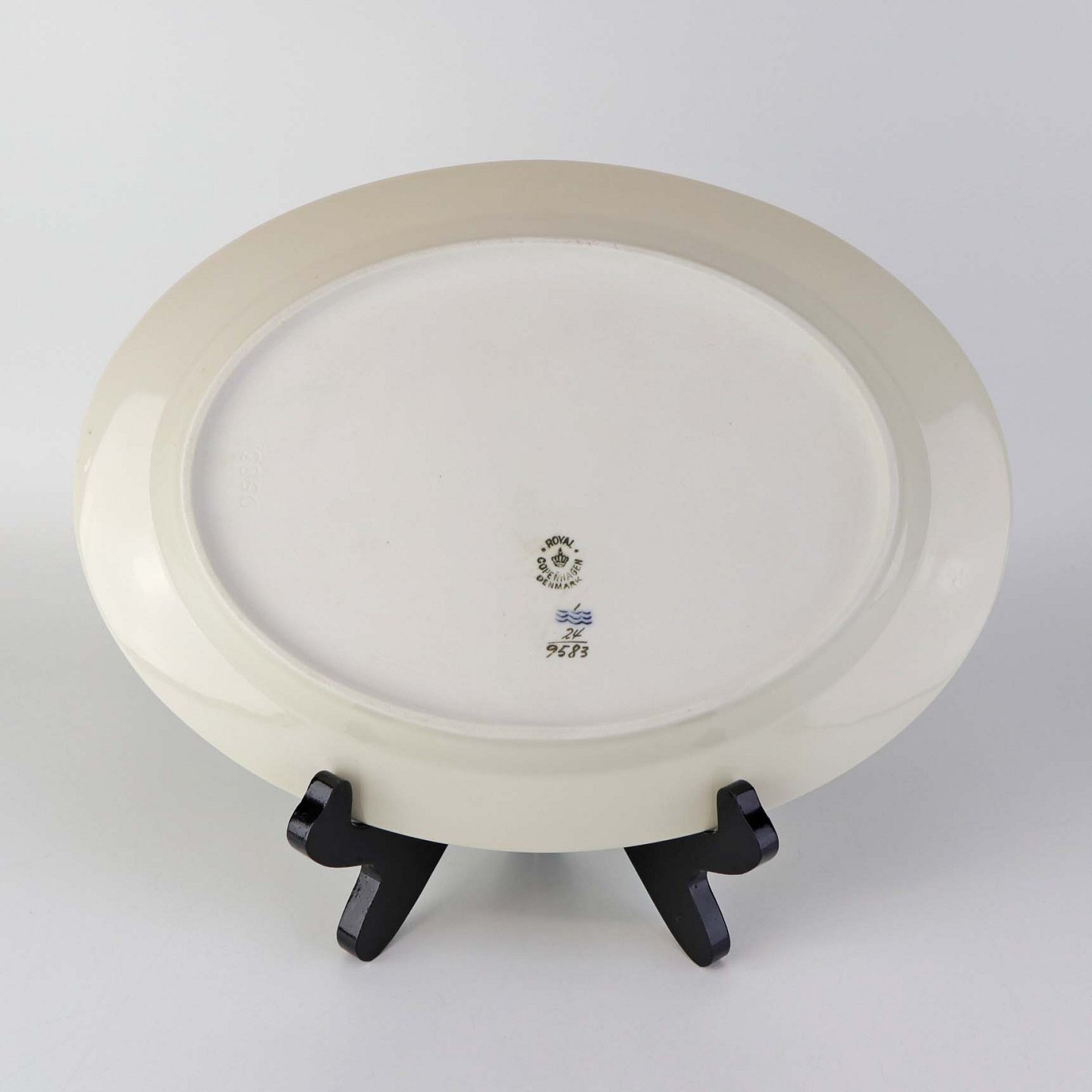 Beskrivelse: Mellemstørrelse kongeligt ovalt serveringsfad i porcelæn fra stellet Asmil. Nr. 24/9583