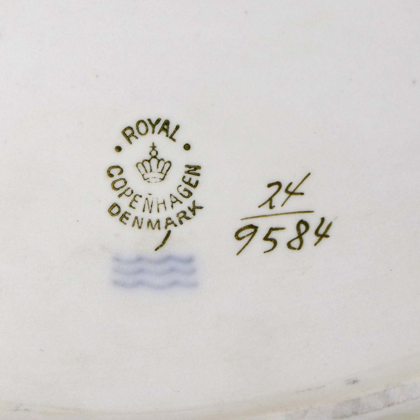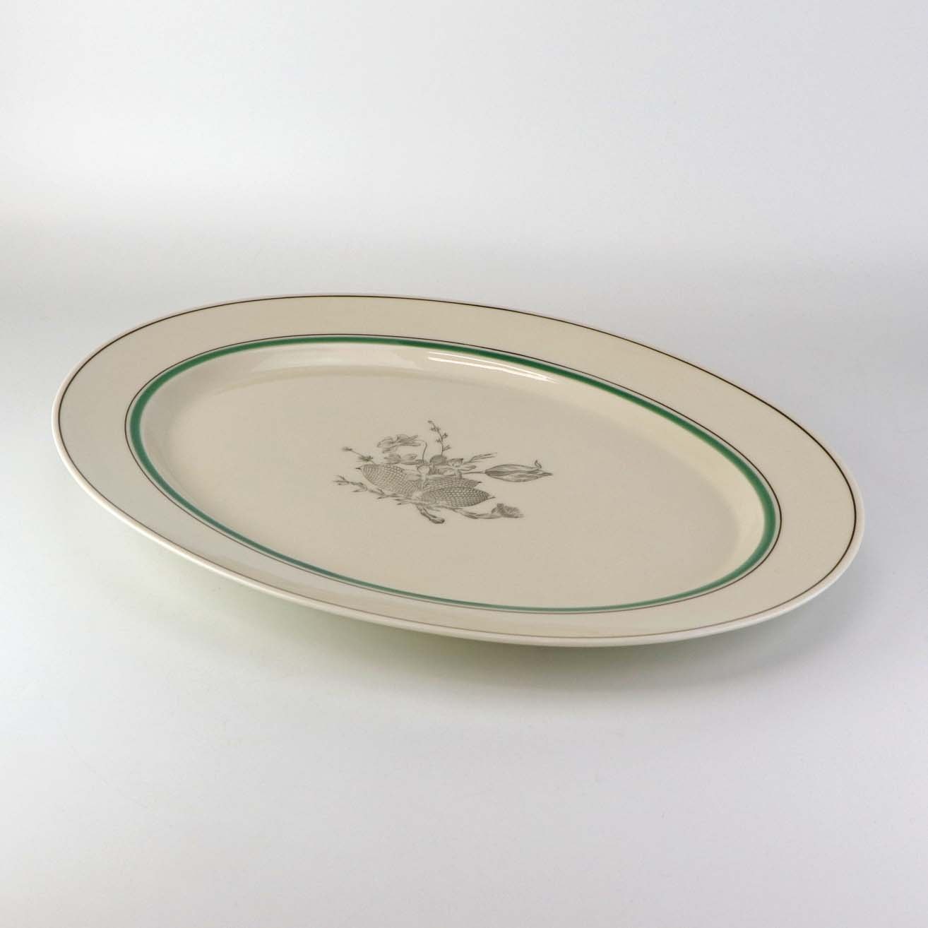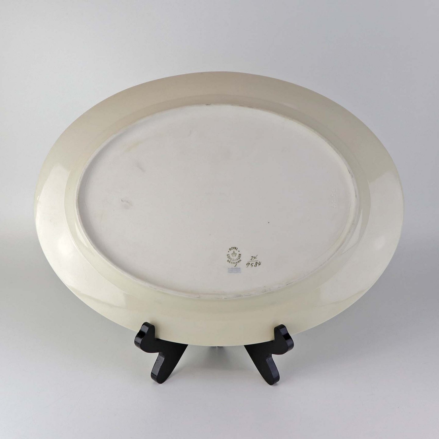 Beskrivelse: Stort kongeligt ovalt serveringsfad i porcelæn fra stellet Asmil. Nr. 24/9584
