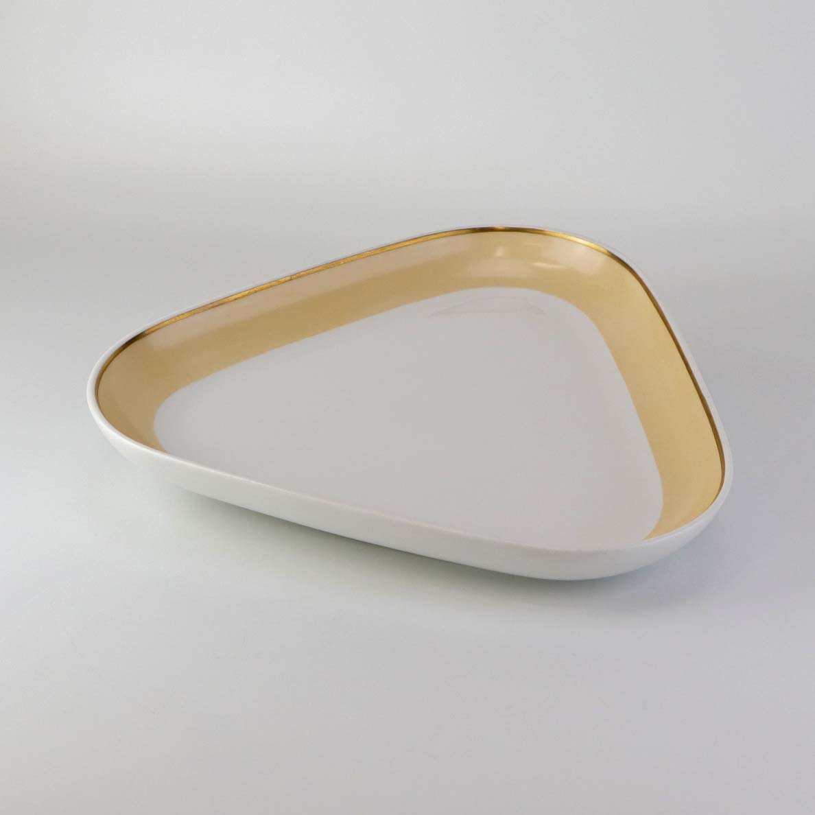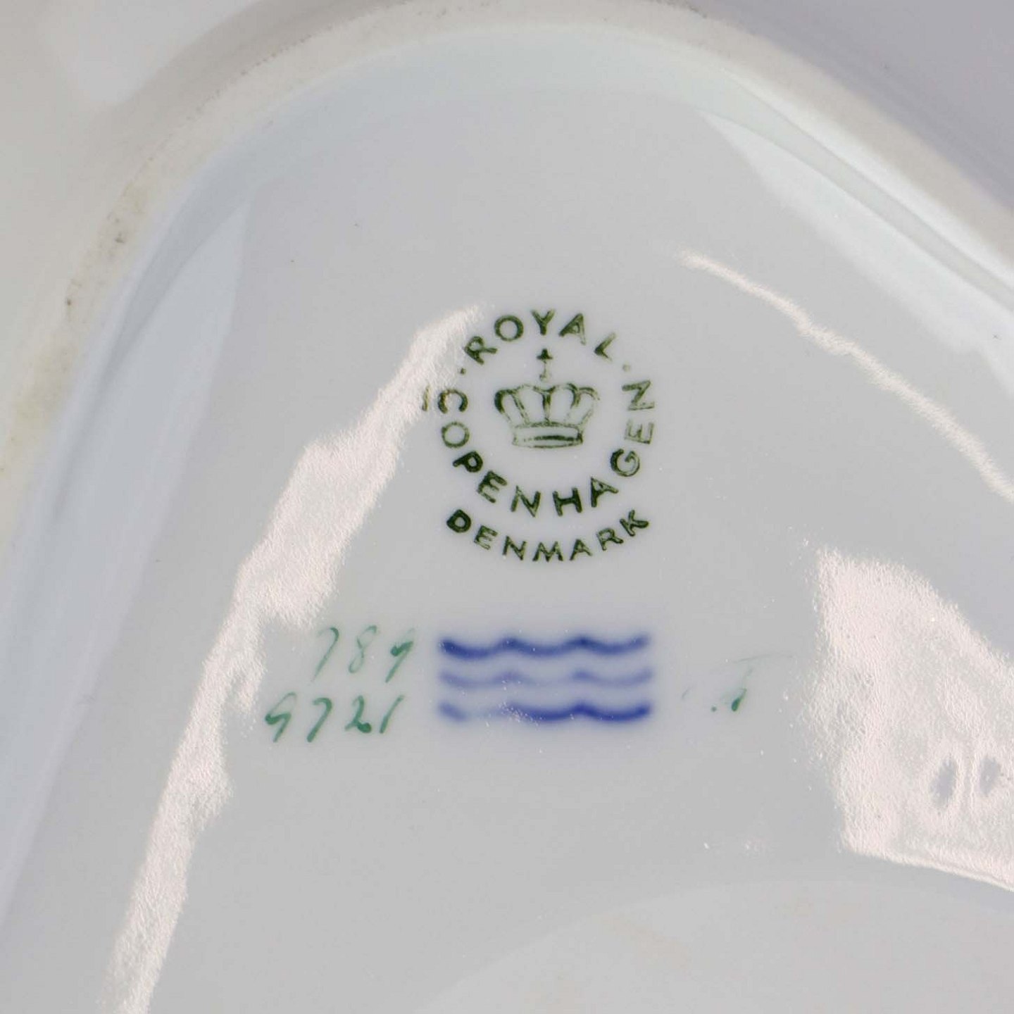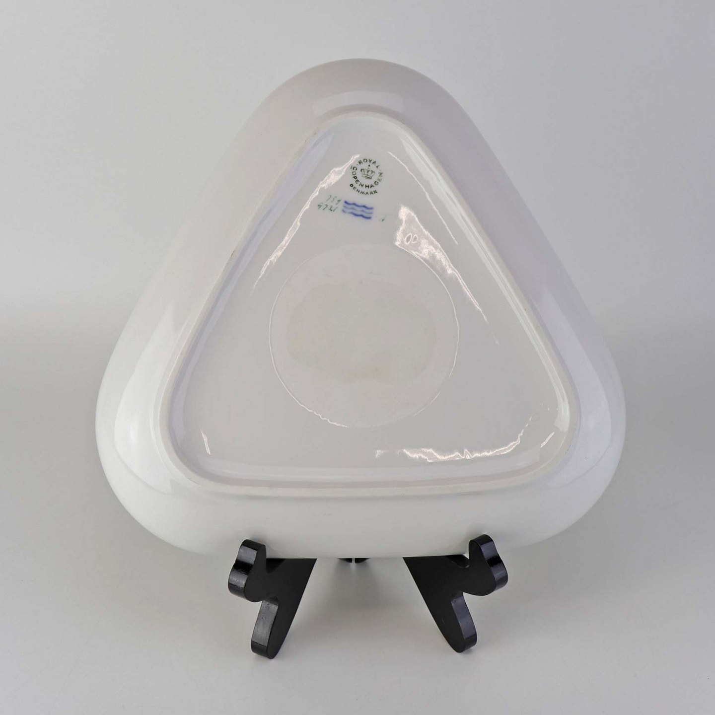 Beskrivelse: Kongelig trekantet kagefad i porcelæn fra stellet Bernstorff. Nr. 789/9721