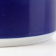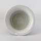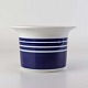 Beskrivelse: Lille urtepotteskjuler i glat hvidt porcelæn dekoreret med blå striber. Nr. 1855/6102