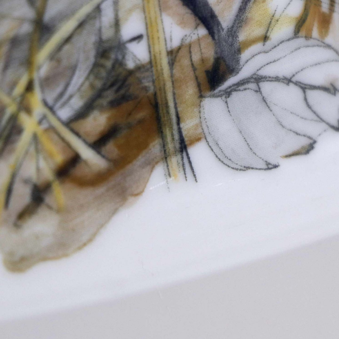 Beskrivelse: Ovalt serveringsfad i porcelæn med motiv af fasan fra stellet Jagtstel. Nr. 35