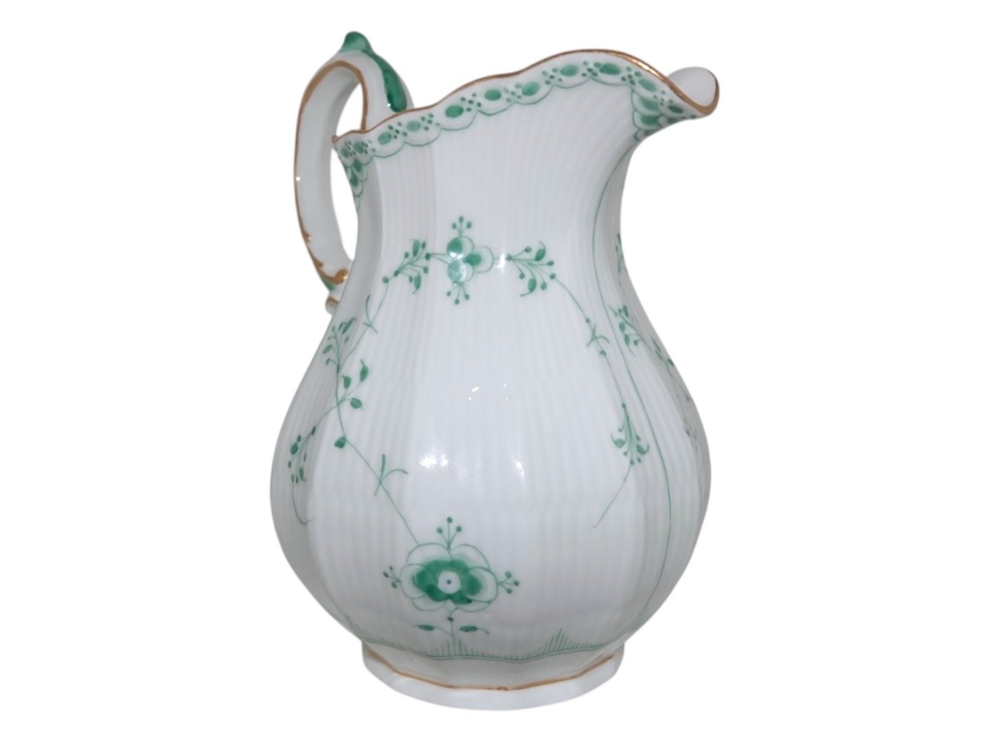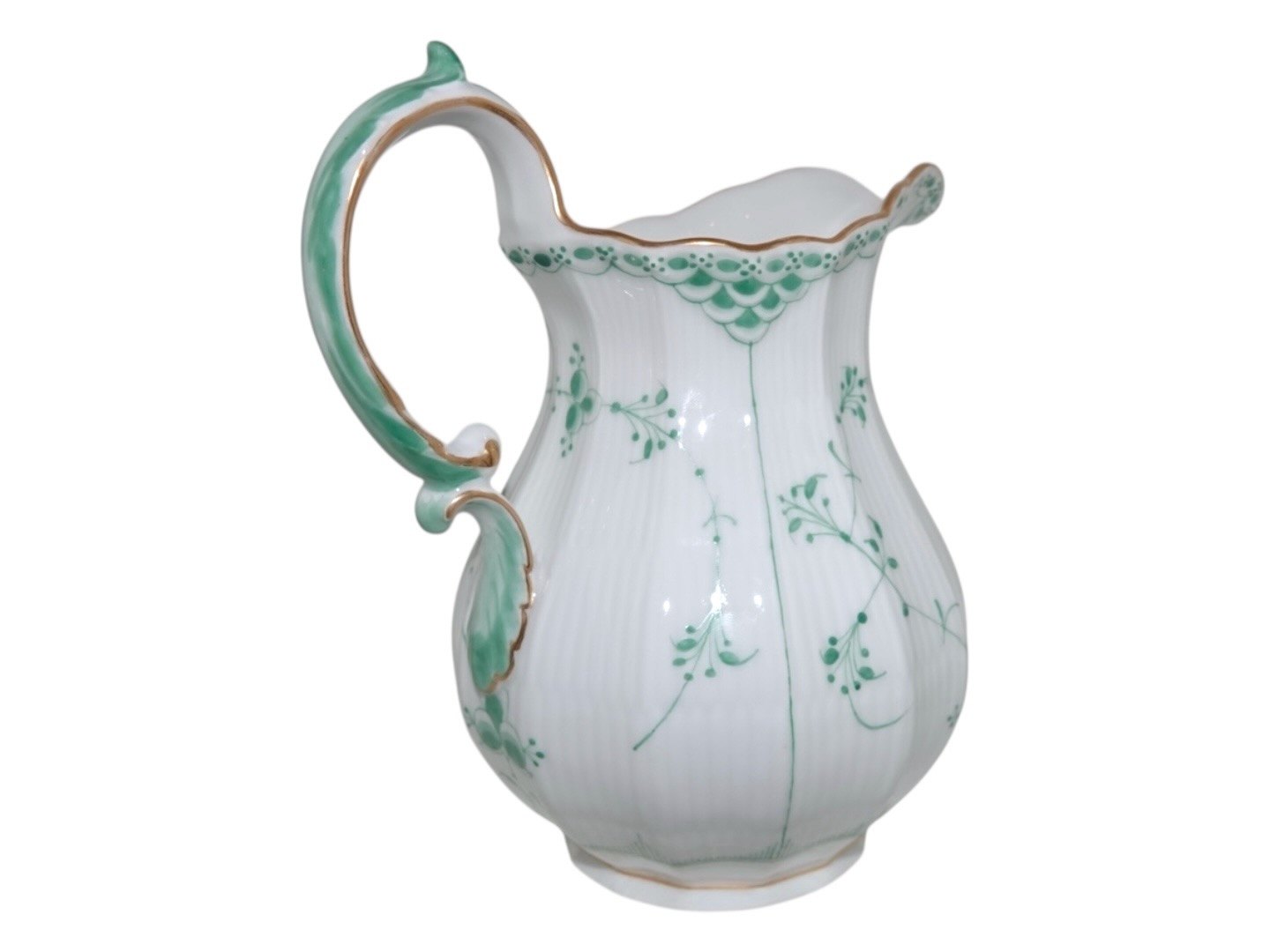 Description: Royal Copenhagen Green Fluted Half Lace with gold trim, milk pitcher.