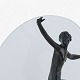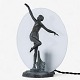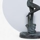 Table lamp with dancing woman in patinated bronze and glass shade.