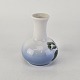 Beskrivelse: Miniature vase i porcelæn med motiv af en æbleblomst på gradueret blå baggrund