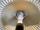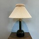 Description: Rare Le Klint table lamp with lamp base of dark green glass mounted with pleated shade. Shade appears nice but with a few holes which are not visible when the shade is on. H. 56.5 cm, lamp base 14.5 cm.