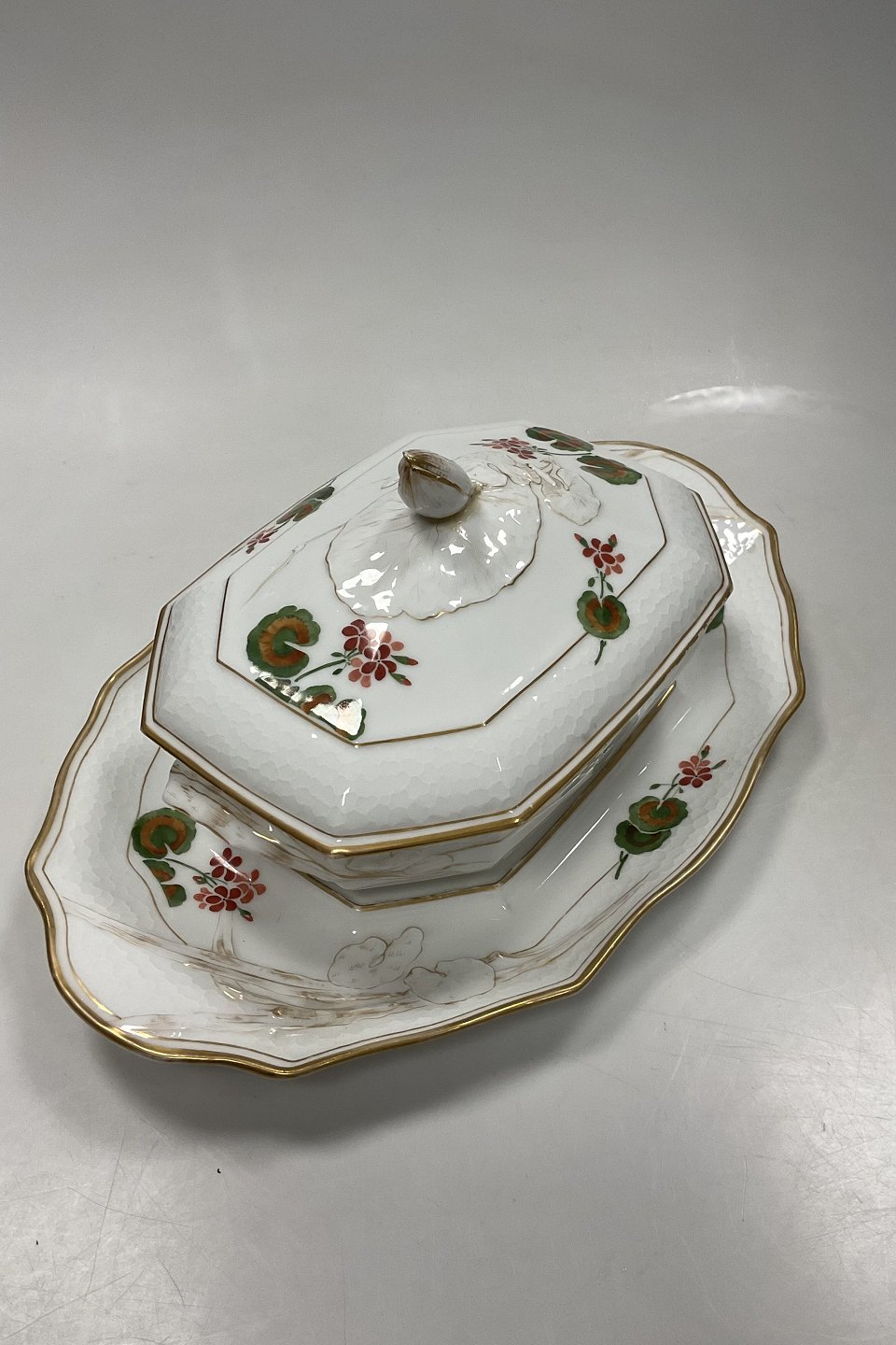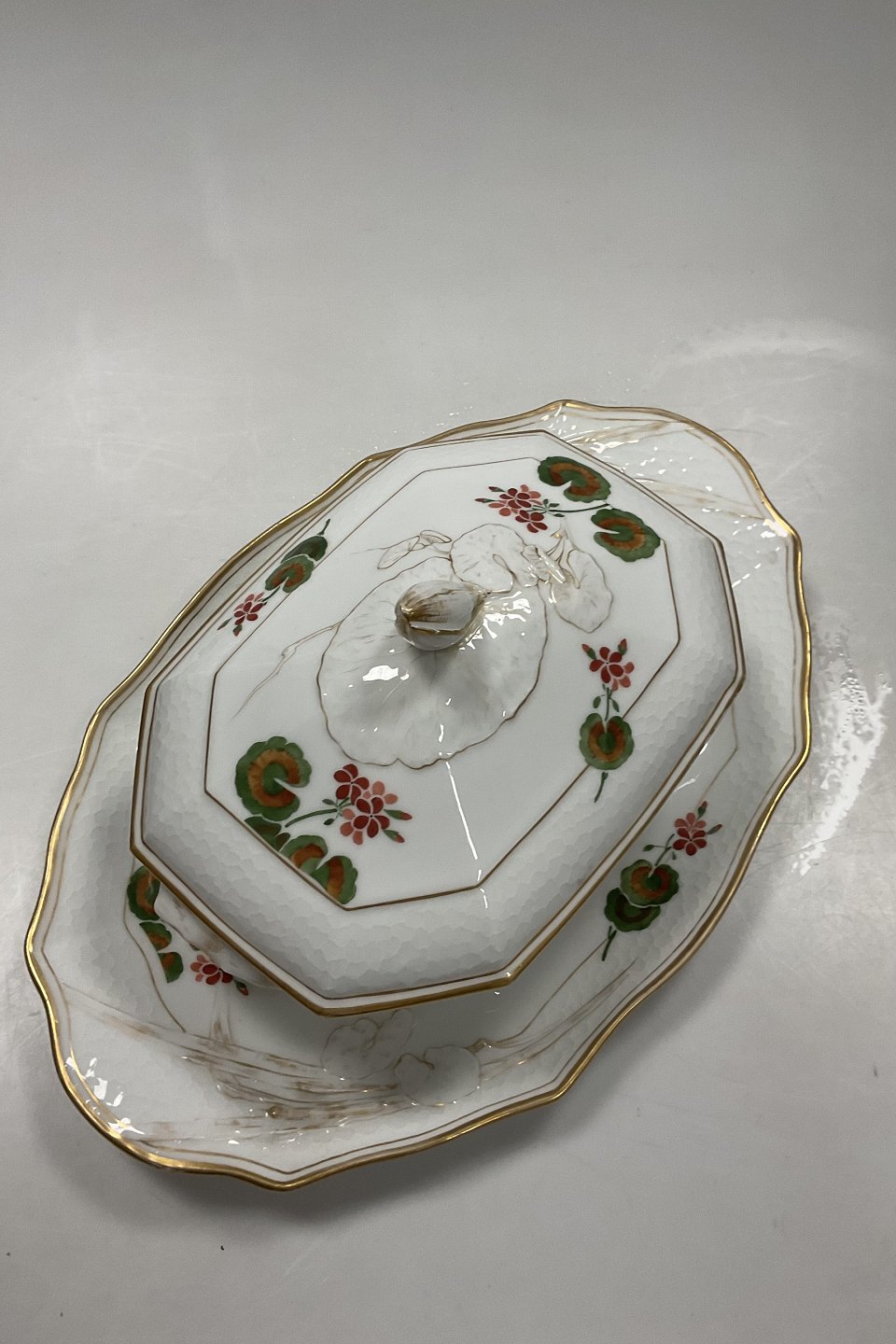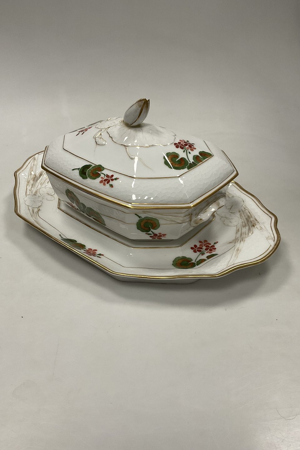 Royal Copenhagen Art Nouveau Stel No. 225 Pelargonie Terrin med fad No. 2038