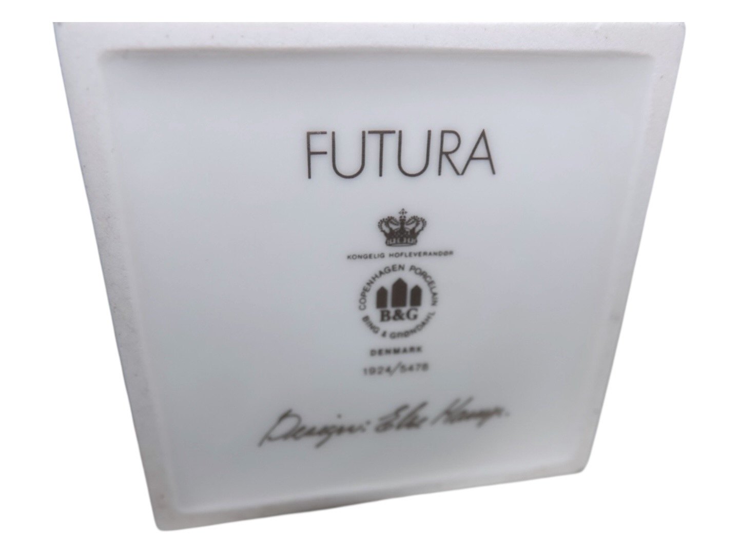 Beskrivelse: Bing & Grøndahl Futura høj vase med sølvdekoration.