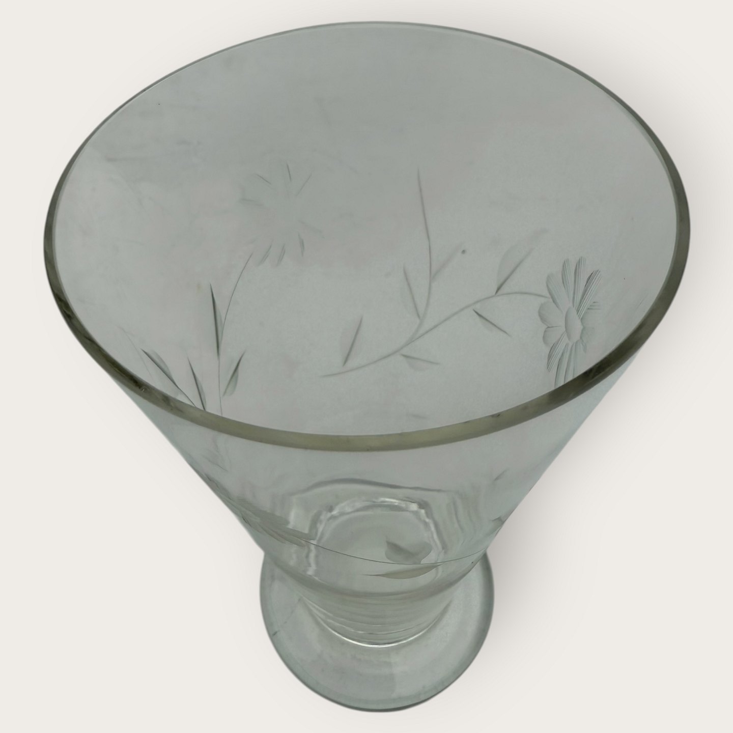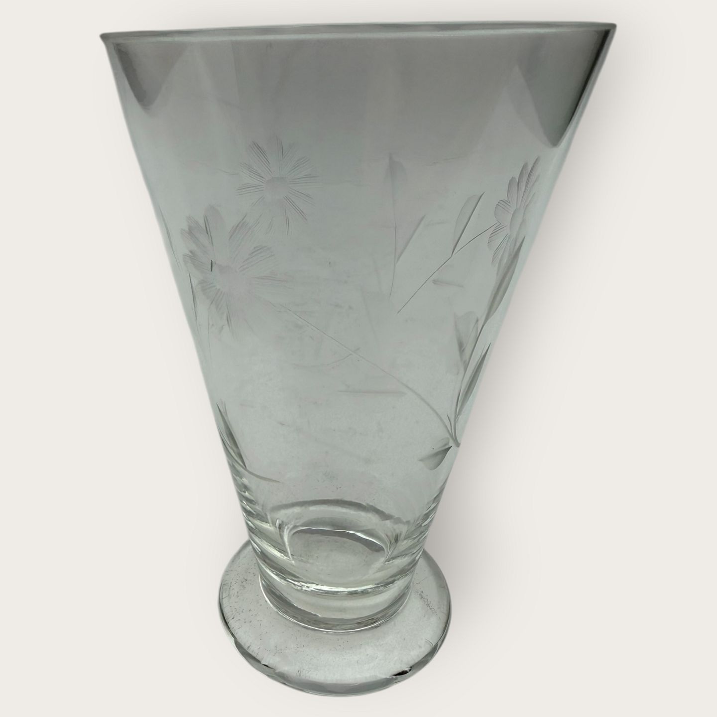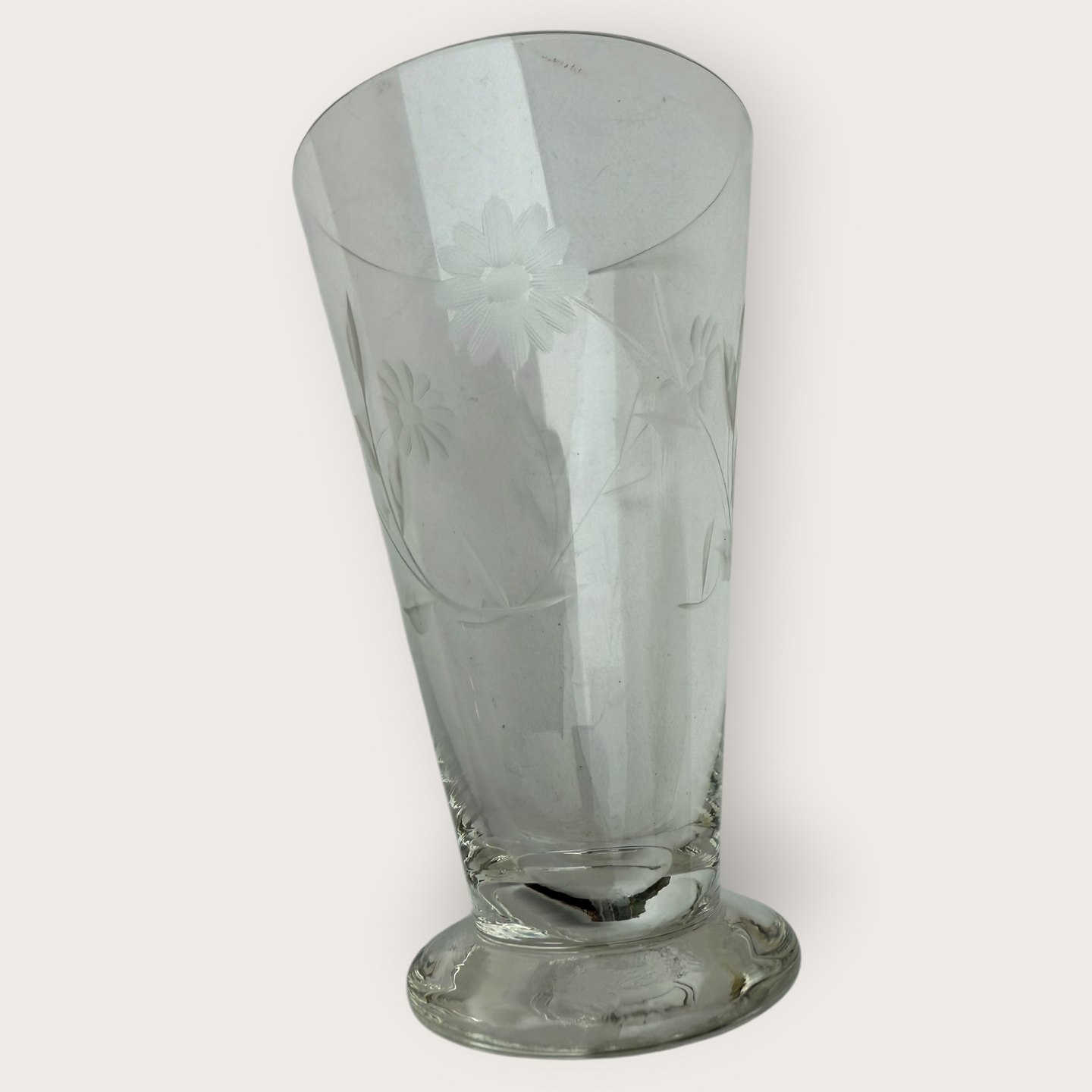 Description: Water / glass with flower cuts, Height 13.5 cm, diameter 9 cm *nice condition*