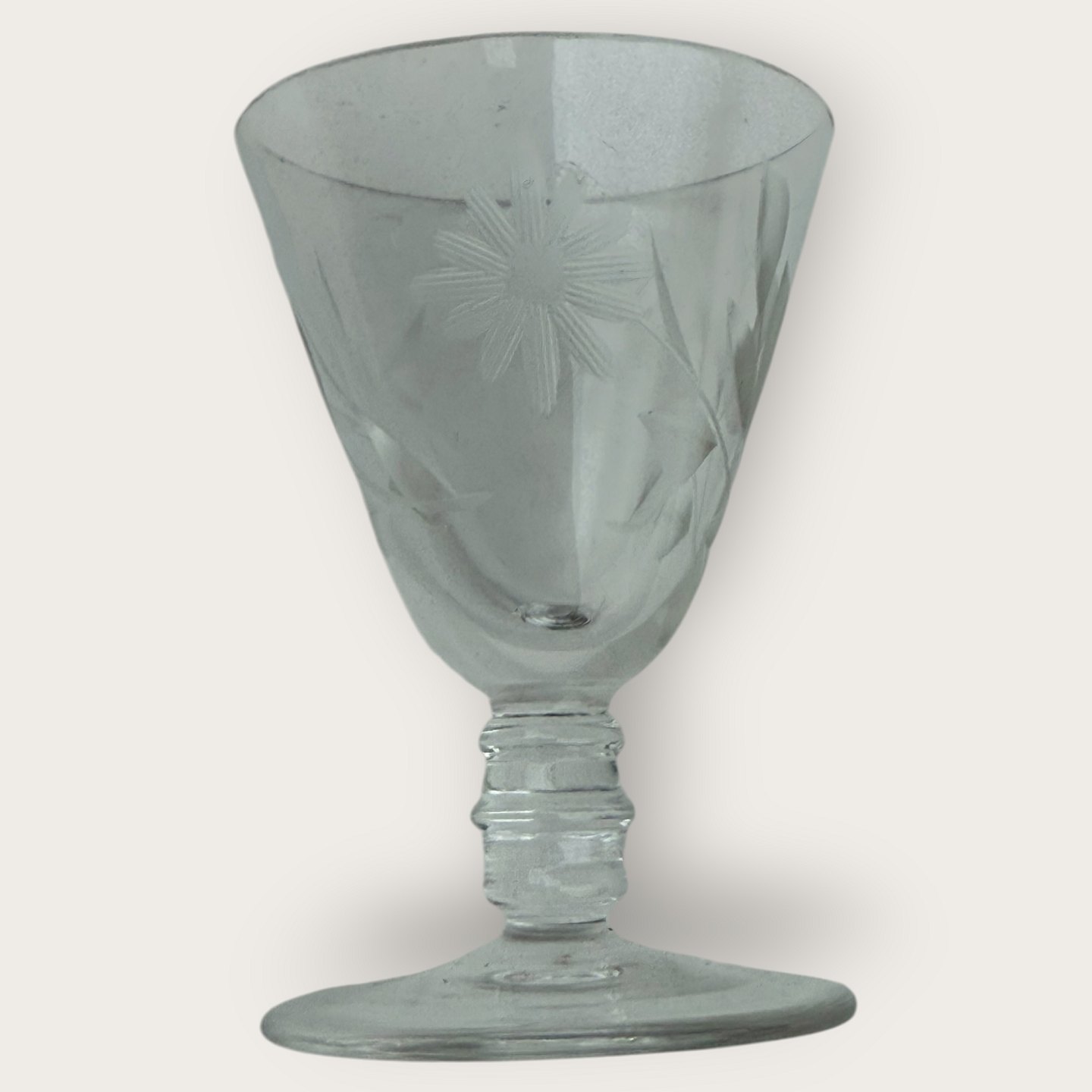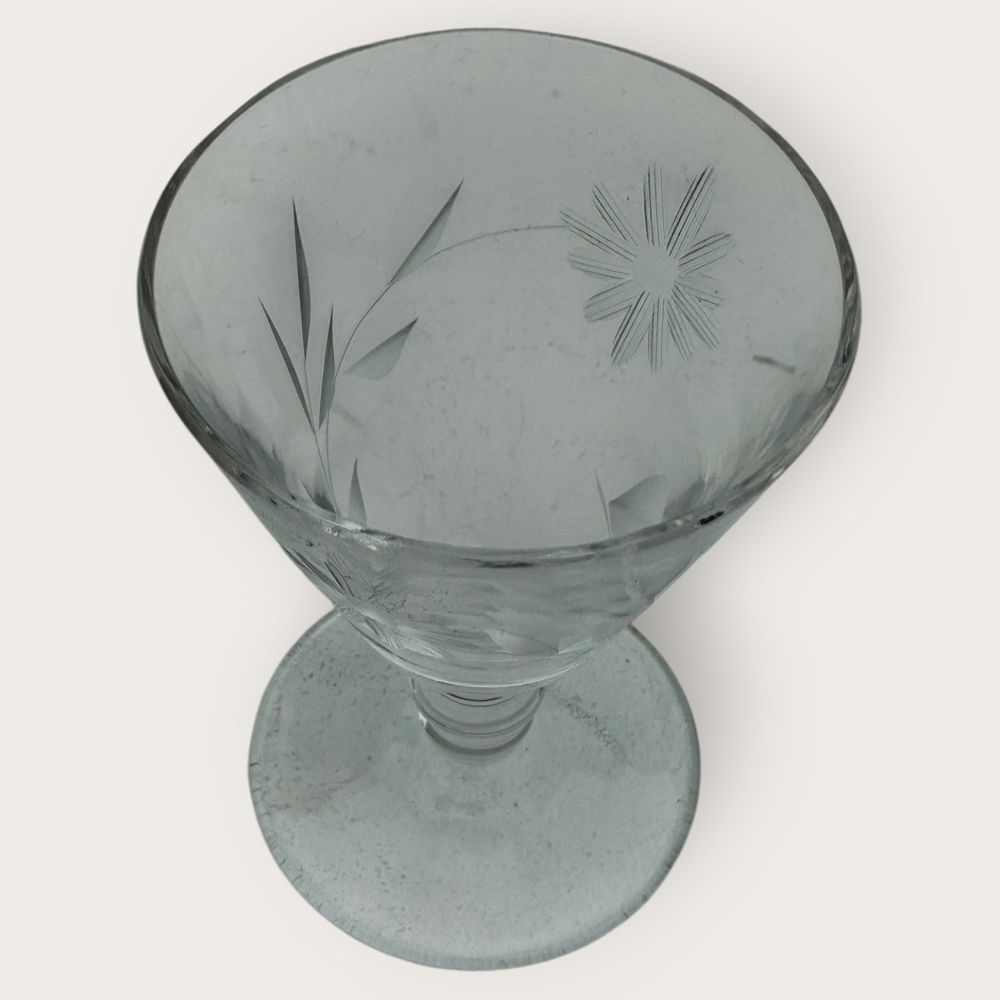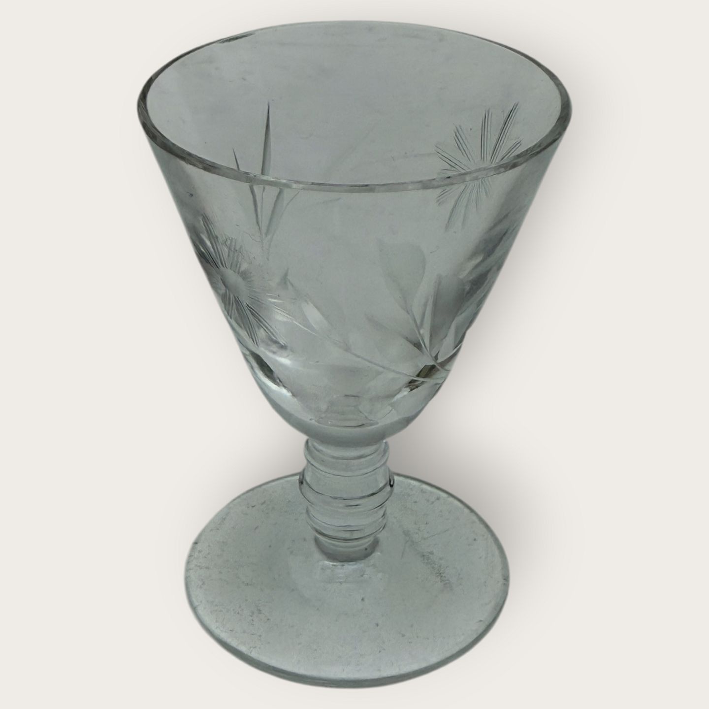 Description: Schnapps glass with flower cuts, Height 6.5cm, diameter 4.5cm *nice condition*