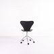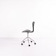 Description: Arne Jacobsen Seven office chair, model 3117, for Fritz Hansen. In black leather and chrome frame with wheels. Classic Danish design.