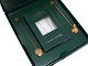Beskrivelse: Georg Jensen Golden Christmas, To lysholdere med Kogle og Egern i gaveæske med små stearinlys.