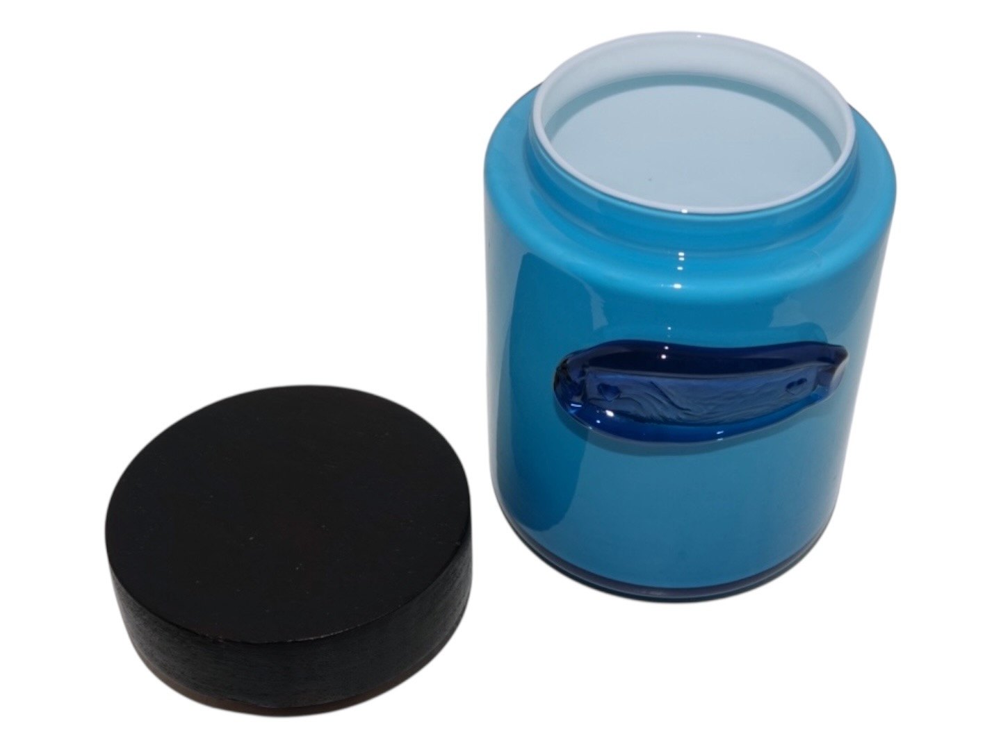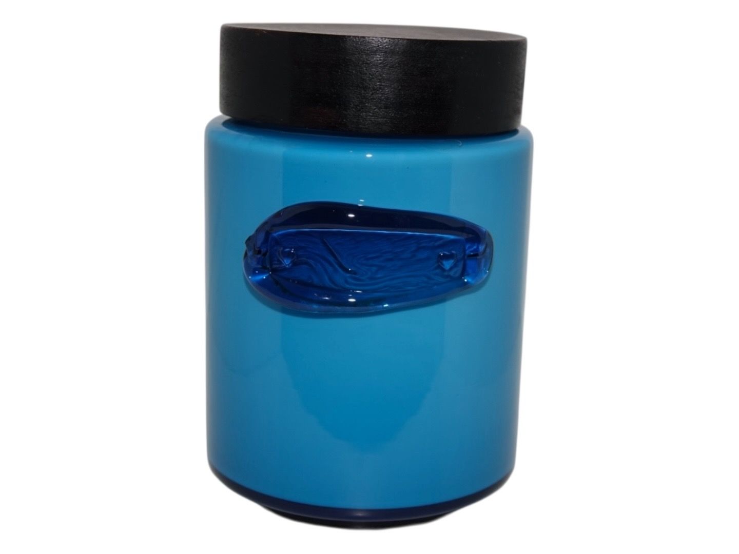 Description: Holmegaard Palet, blue lidded jar with no text.