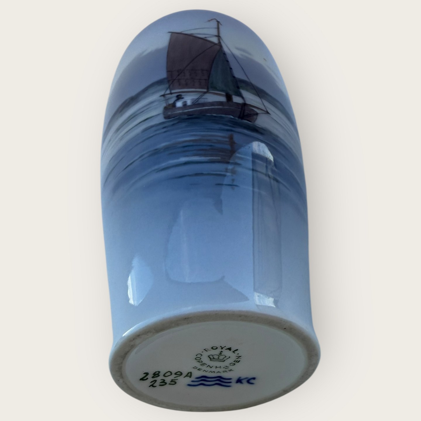 Beskrivelse: Royal Copenhagen, Vase med fiskekutter med sejl #2809A/235, 17cm høj, 1.sortering *Pæn stand*