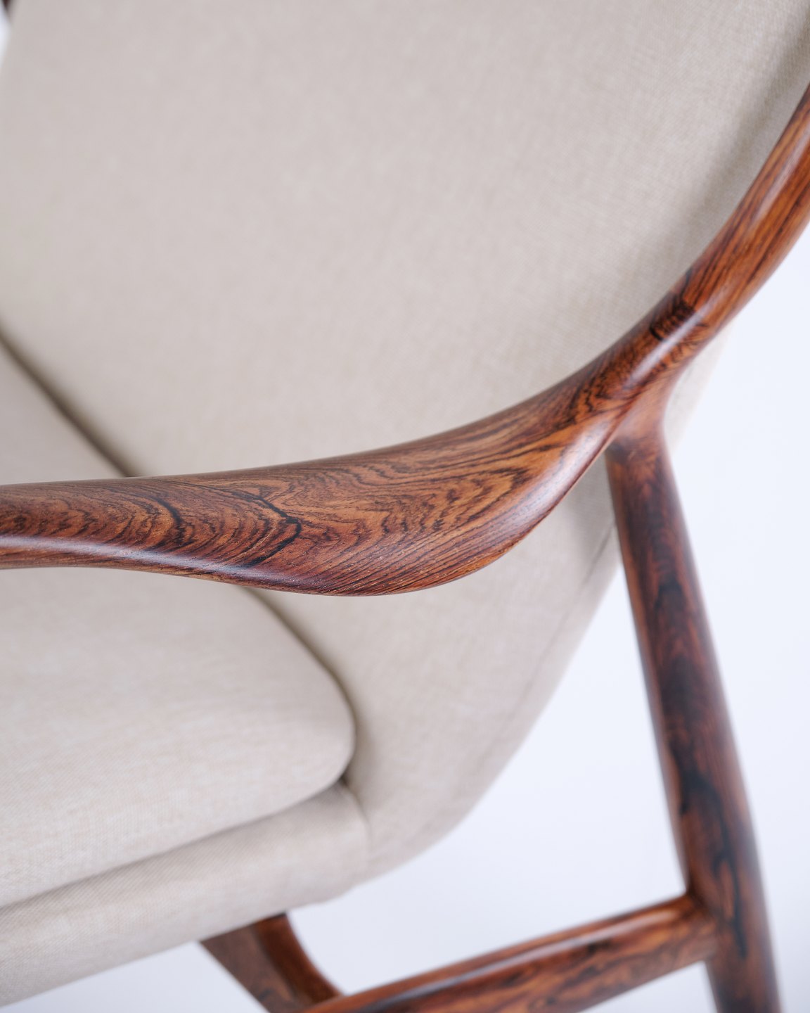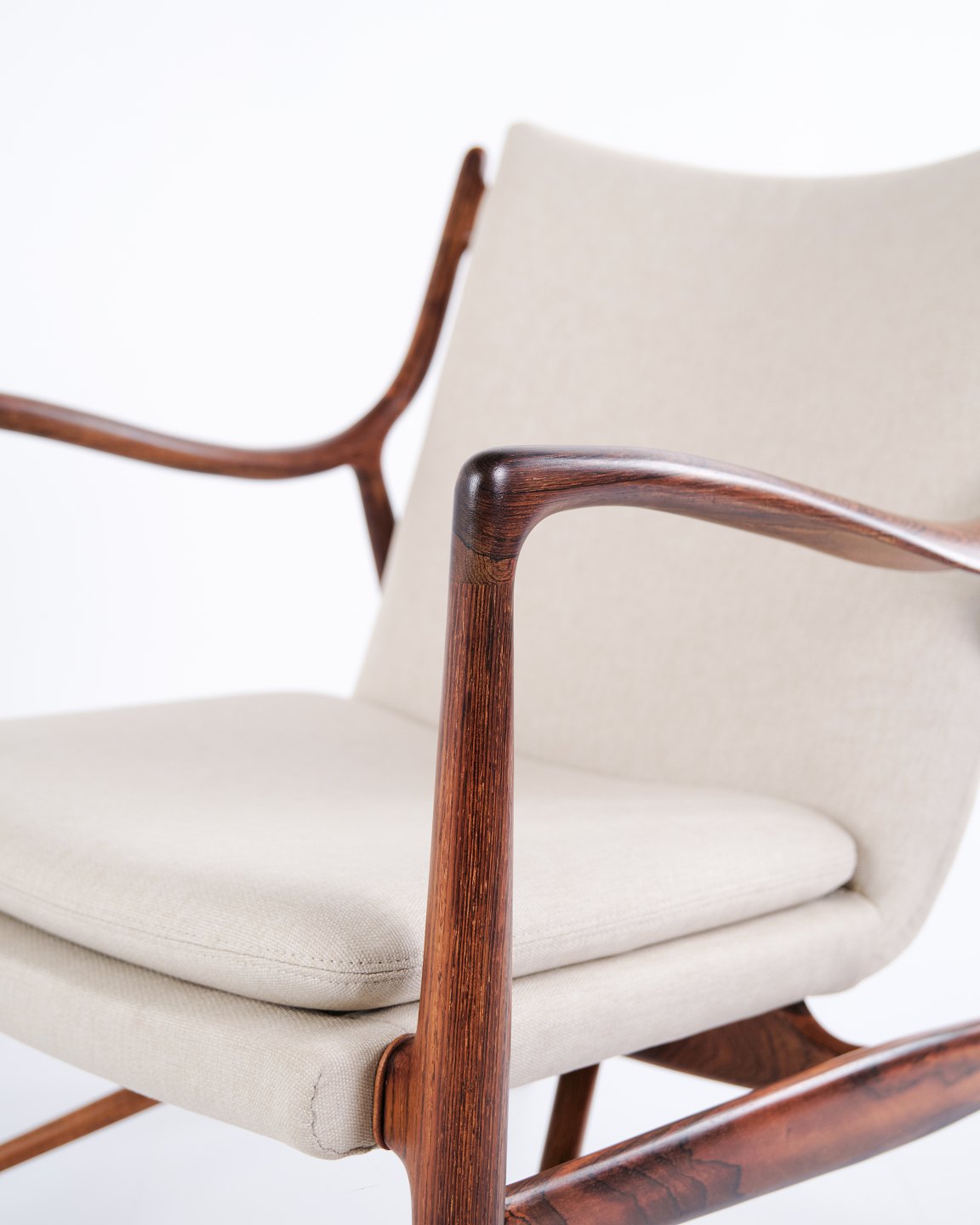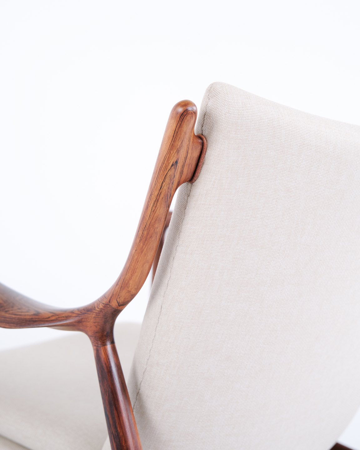 Sessel – Modell NV45 – Palisander und leichter Stoff – Finn Juhl – Niels Vodder – 1950er Jahre