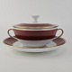 Service i porcelæn med rød bort og guldkant