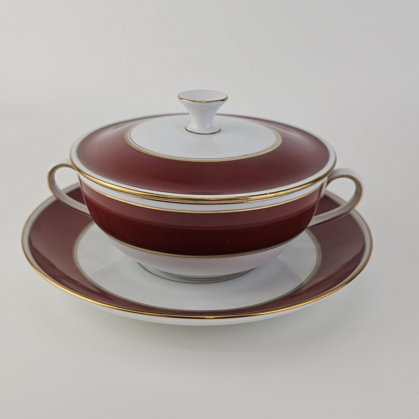 Beskrivelse: Bouillonkop med låg og underkop i porcelæn fra stellet Egmont