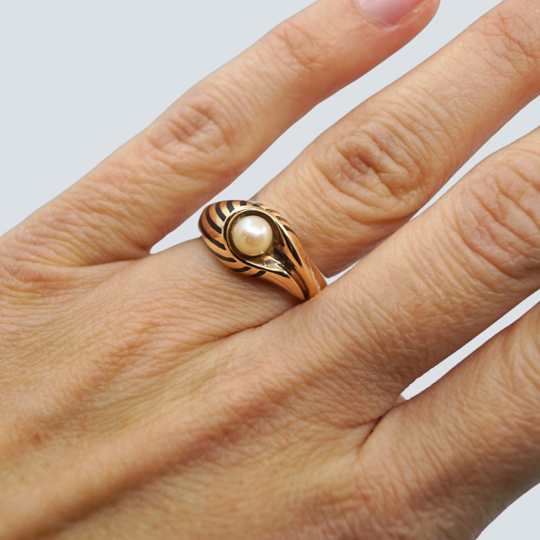 Bernhard Hertz; Ring i 14 kt. guld med emalje og perle