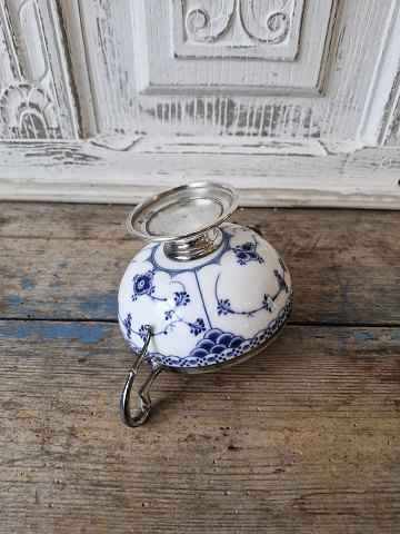 Royal Copenhagen Musselmalet halvblonde sukkerskål med forsølvet montering. 1. sortering Højde 9 cm. Mål 12 x 18,5 cm.