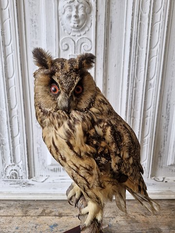 Udstoppet skov hornugle i flot stand monteret på natur gren