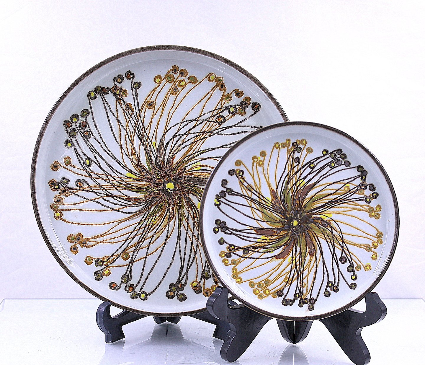 Kgl. Baca fajance fade. Runde fade med abstrakt blomstermotiv