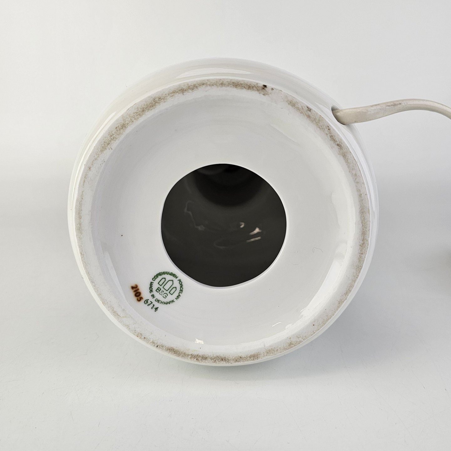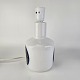 Bordlampe i hvidt porcelæn med abstrakt dekoration i blå og grå
