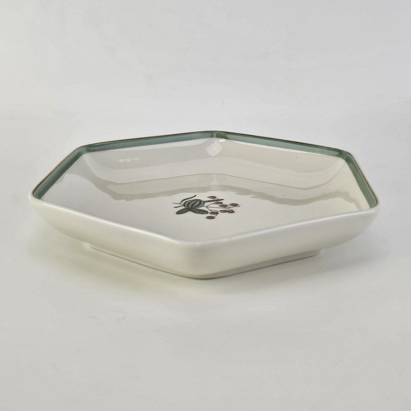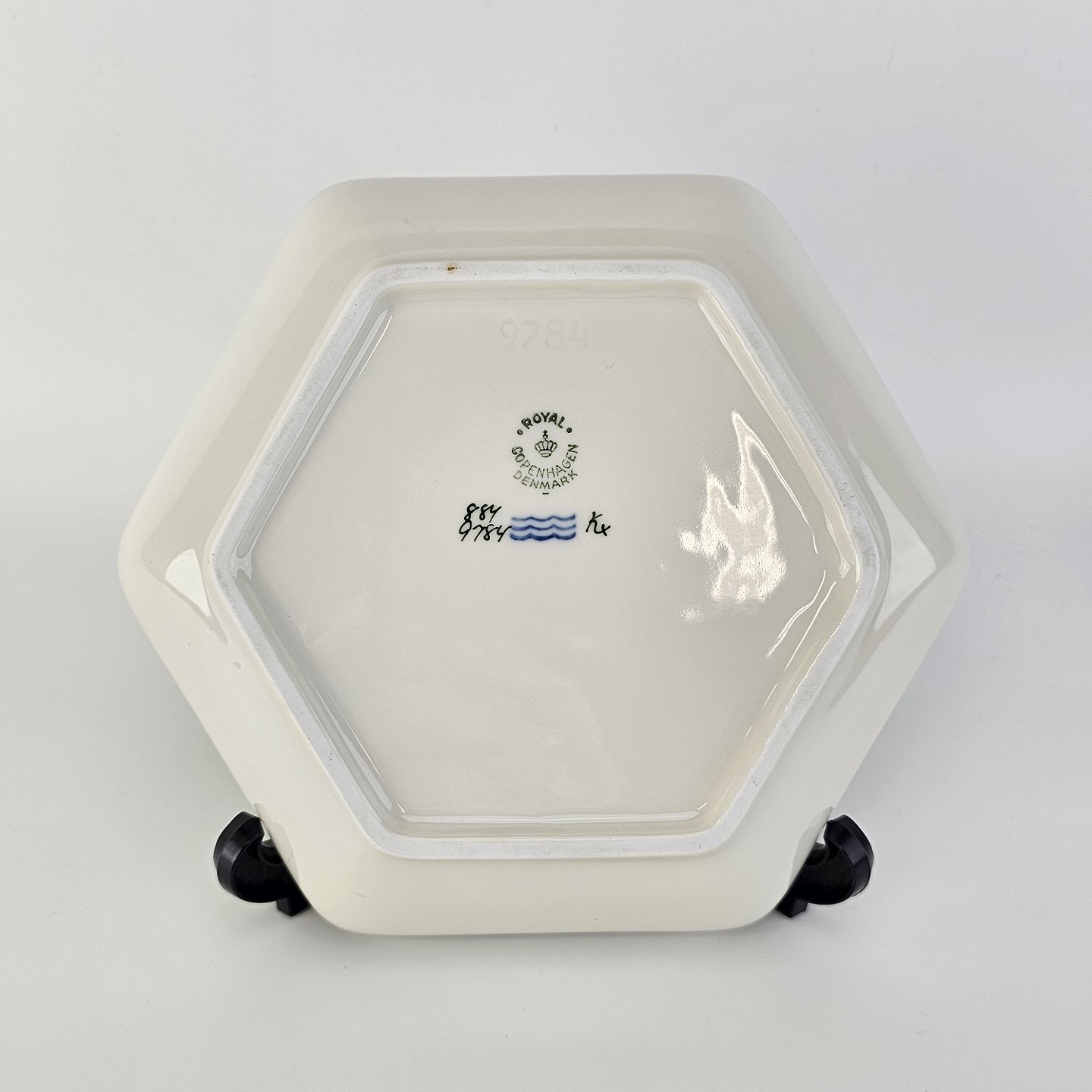 Sekskantet skål i kongelig porcelæn fra stellet Hjertegræs. Nr. 884/9794