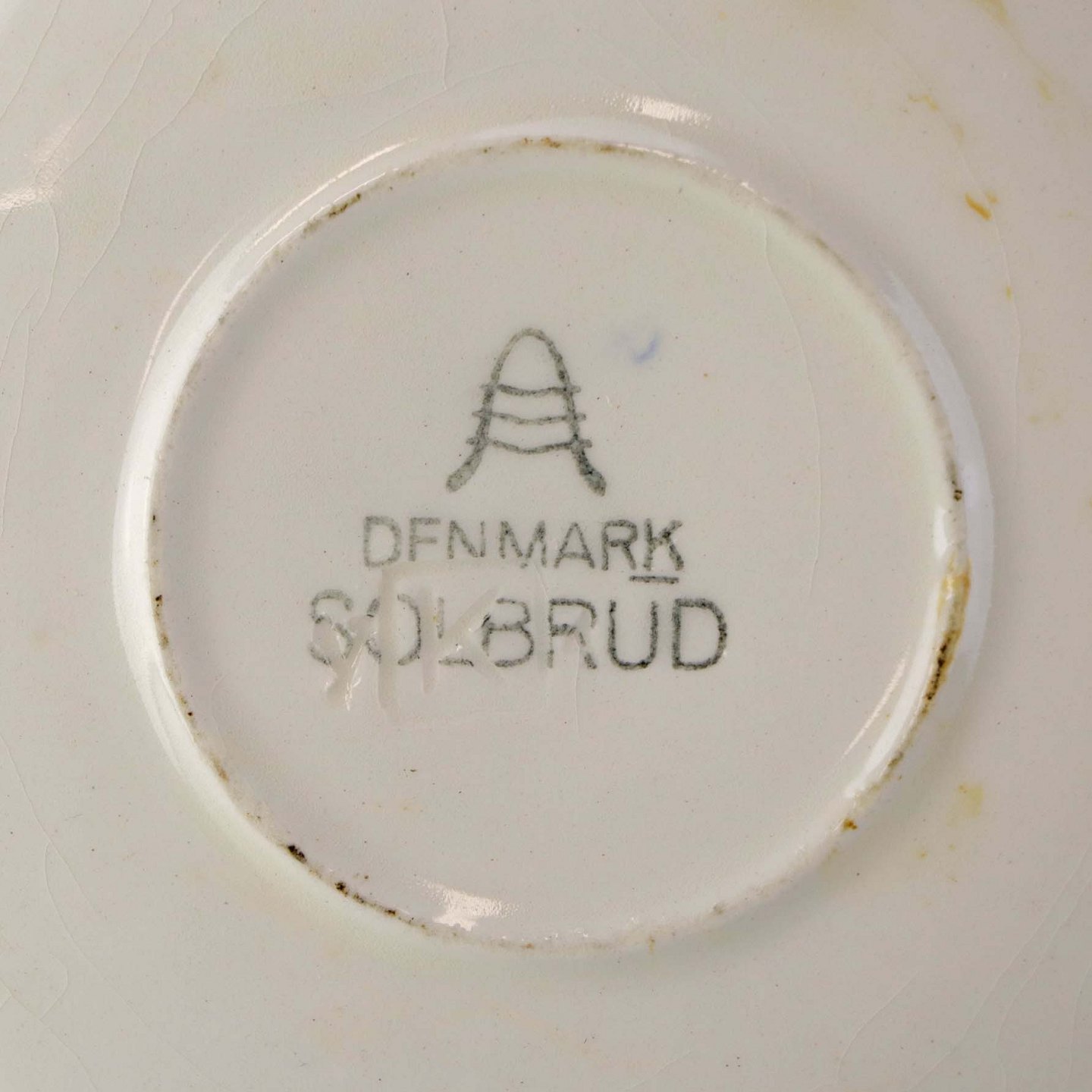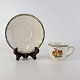 Kaffekop med underkop i fajance fra stellet Solbrud fremstillet i perioden 1937-1967. Nr. 2049