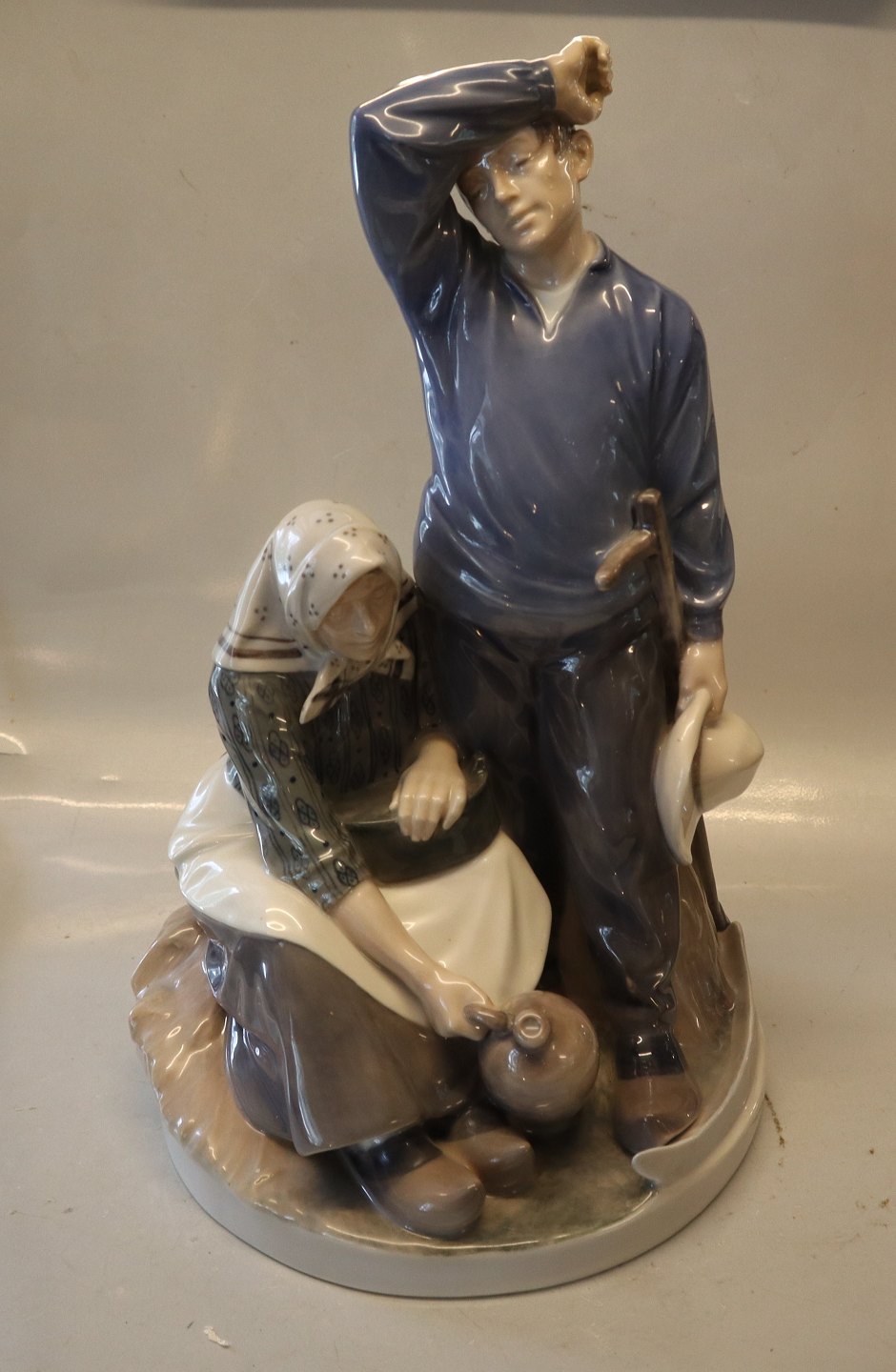 Beskrivelse: Kgl. kæmpefigur fra Royal Copenhagen 1352 Høstfolk Dansk design af Chr. Thomsen i 1912 43 cm 1. sortering i fin og hel stand