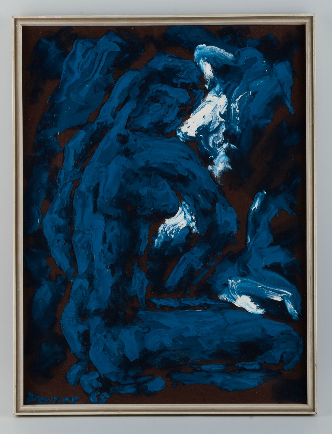 Oil on panel, abstract female figure, signed and dated 65.