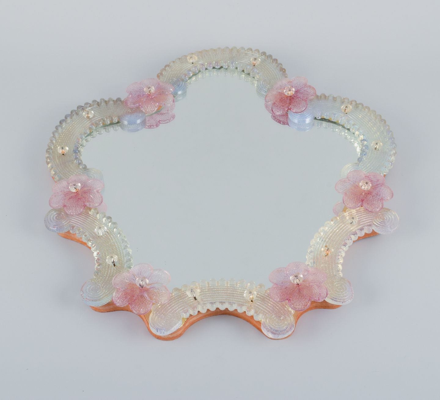 Murano, Venice, adorable mirror in art glass with gold and pink decoration.
