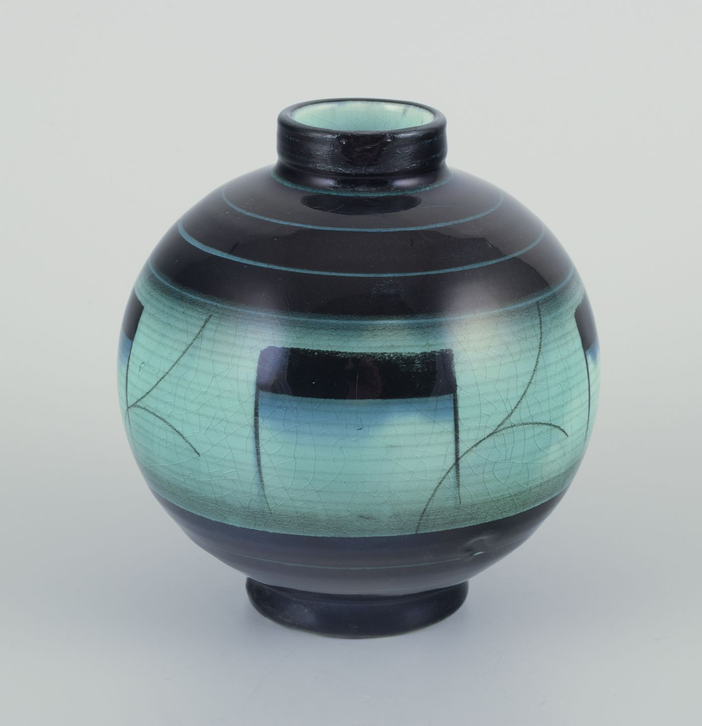 Vase in glazed faience. Art Deco. Bauhaus-inspired decoration.
