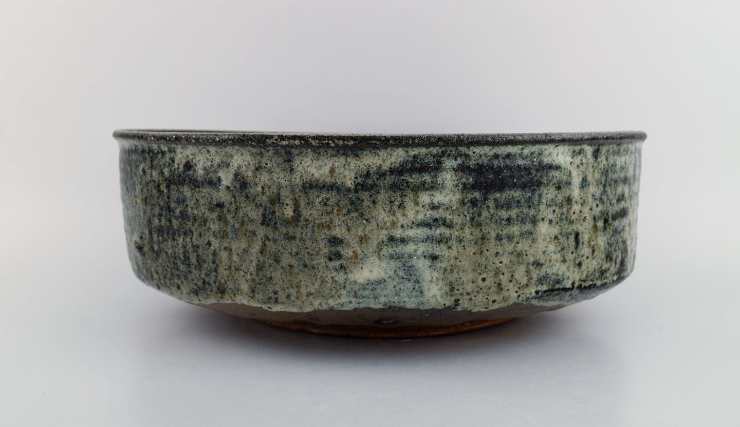 Gutte Eriksen (1918-2008), eget værksted. Stor skål i glaseret stentøj. Rakubrændt teknik. Dansk design, 1950/60'erne. Måler: 36 x 12 cm. I flot stand. Signeret.