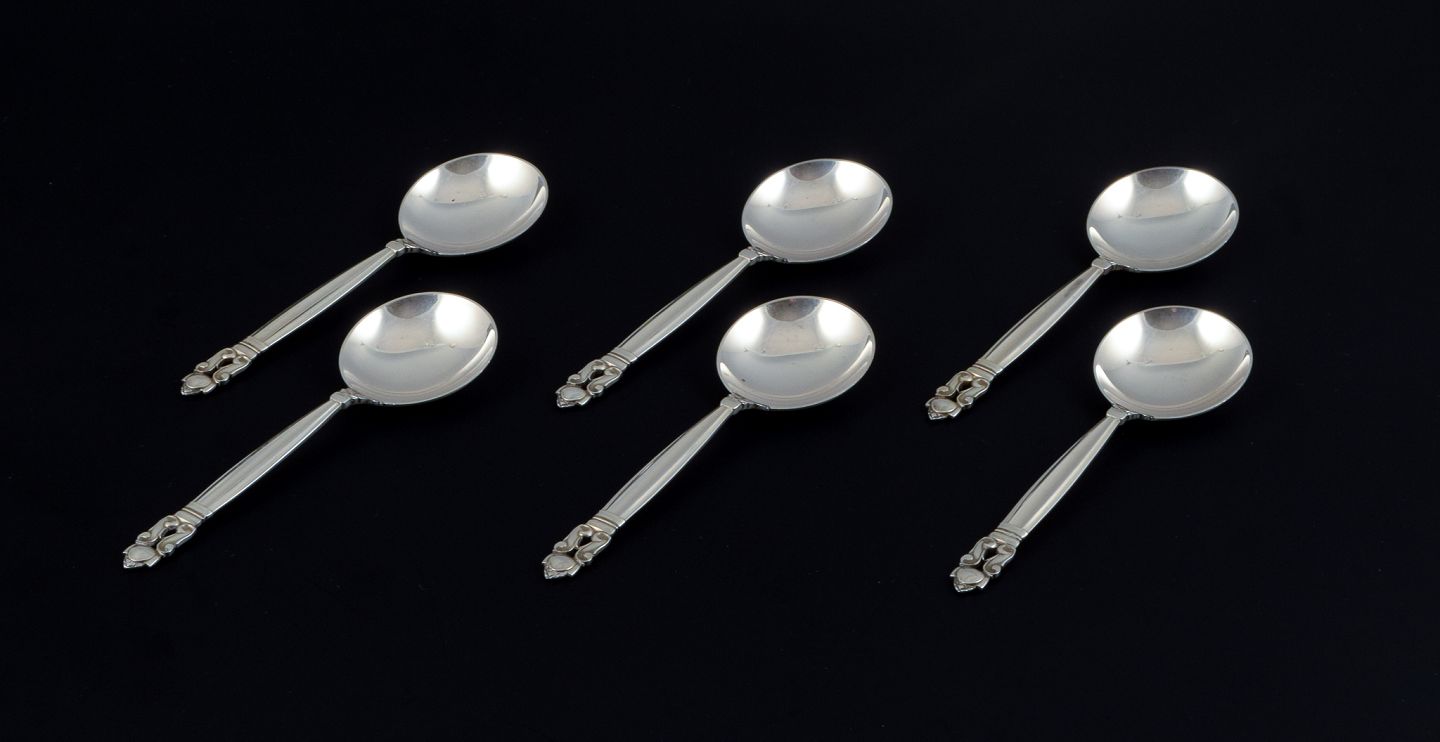 Georg Jensen, Acorn, six bouillon spoons in sterling silver.