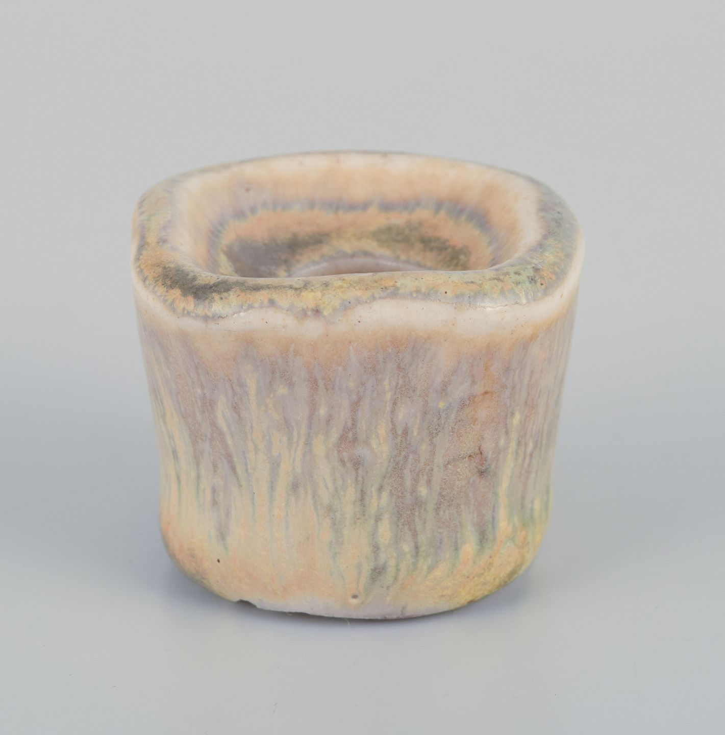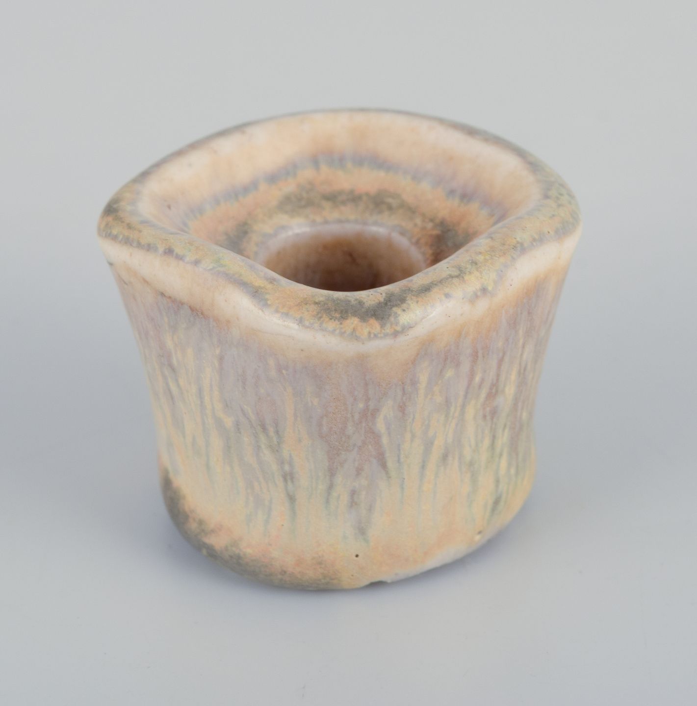 Small ceramic candlestick. Glaze in yellow and sand-colored tones.