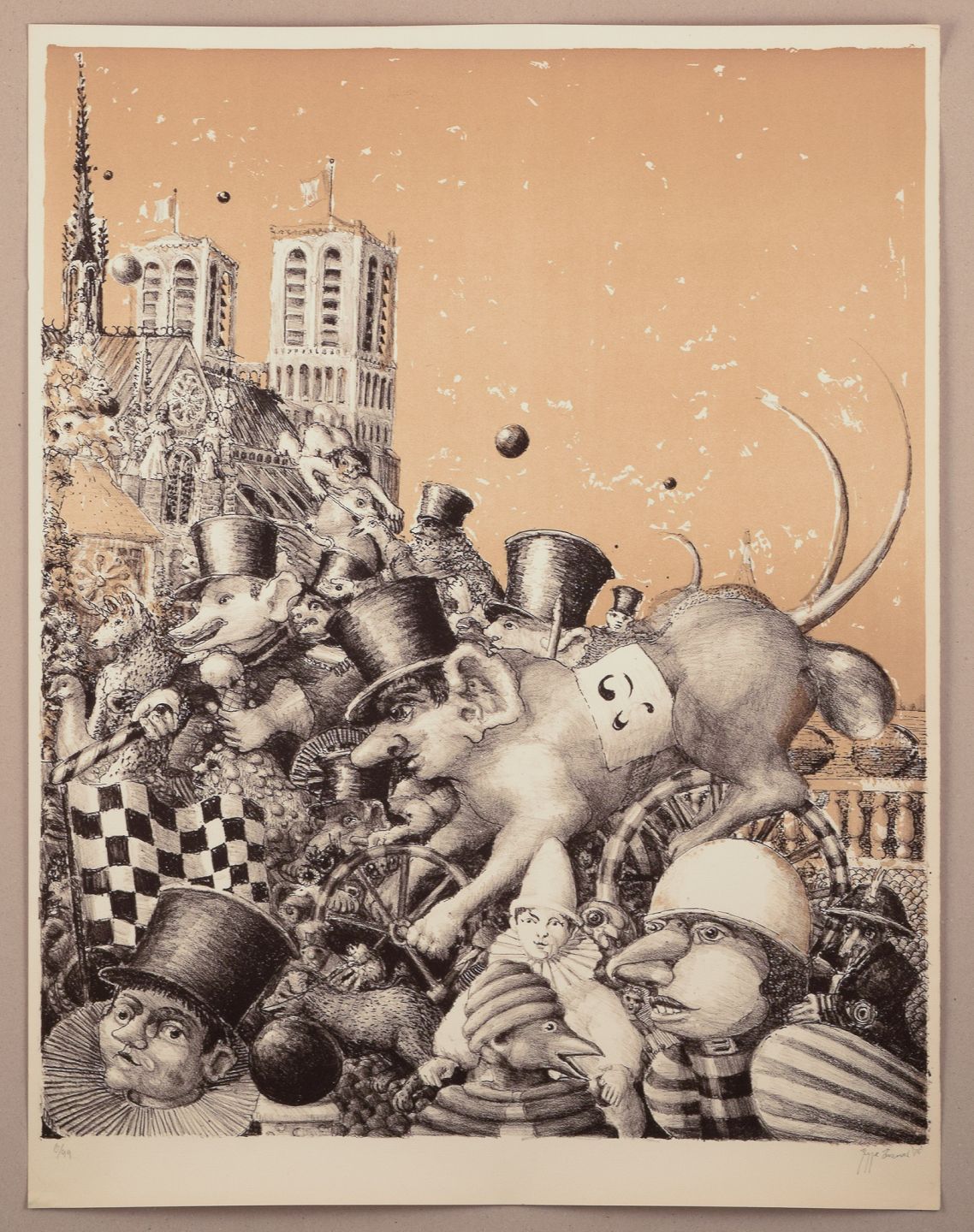 Jeppe Eisner, listed Danish artist. Color lithograph, depicting a city festival. Dating : 1976 Hand-signed in pencil. Edition 6/99. Perfect condition. Dimensions: H 80.0 cm x W 61.5 cm.