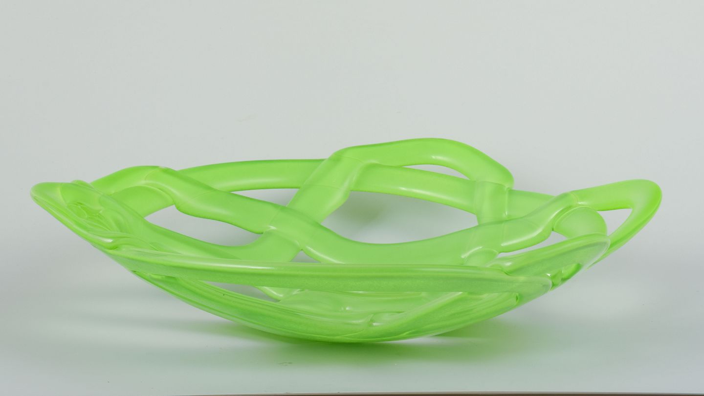 Free-formed/openwork glass in vibrant lime green.