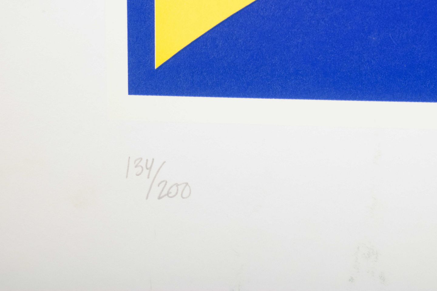 Grafisk komposition i klare primærfarver, hvor gule, orange og røde buede former skaber en rytmisk kontrast mod en intens blå baggrund. Værket fremstår med Arnoldis karakteristiske minimalistiske formsprog, hvor rene linjer, stærke farvefelter og enkelhed er i centrum.